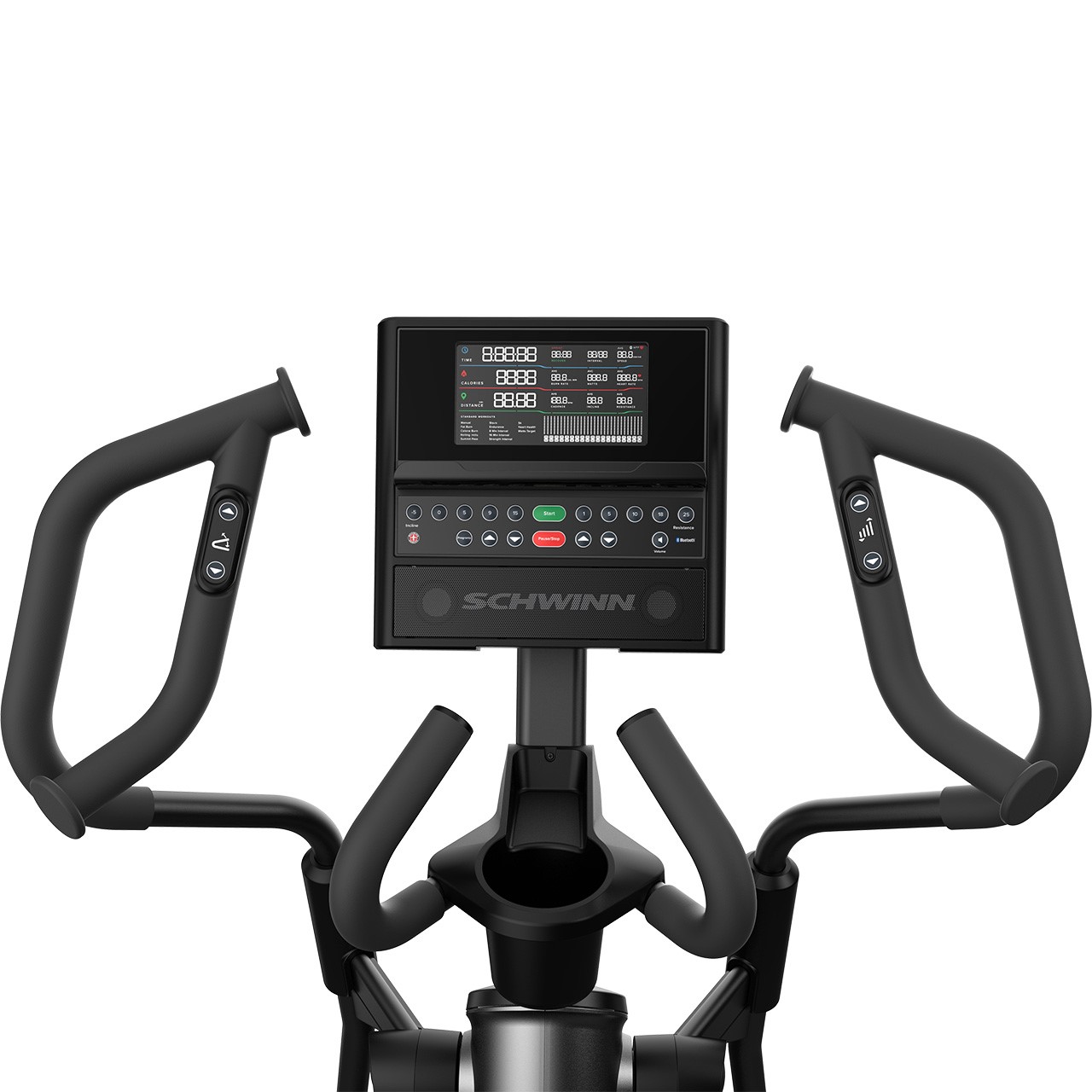 Mit dem Schwinn Ellipsentrainer 590E können Sie Ihr Training mit 25 verschiedenen Widerstandsstufen und insgesamt 29 Trainingsprogrammen abwechslungsreich gestalten. Die Steuerung erfolgt über ein 7-Zoll-LCD-Display mit Bluetooth-Schnittstelle. Die Wattstufen lassen sich bequem in 10er-Schritten einstellen (max. 990 W), sodass Sie Ihr Training präzise an Ihre Leistungsfähigkeit anpassen können. Darüber hinaus verfügt er über Bluetooth-Lautsprecher und optional die Möglichkeit, Ihren Puls über einen Bluetooth-Brustgurt zu überwachen.