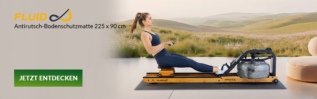 Besonders praktisch fand der Kollege die flexible Verlegung: Man konnte aus den puzzleförmigen Segmenten individuelle Flächen zusammensetzen und diese bei Bedarf auch mit weiteren Bodenschutzmatten erweitern. Noch am selben Abend bestellte er selbst zwei Sets der Schutzmatten von Tunturi und eine speziell für den Einsatz unter Rudergeräten entwickelte Bodenschutzmatte von Fluid Rower für sein Holzrudergerät. Die Lieferung kam schnell, die Verlegung war kinderleicht – und das Ergebnis überzeugte sofort. Die Matten dämpften Stösse und Vibrationen spürbar ab, boten sicheren Halt und schützten den Boden zuverlässig. Endlich konnte er wieder uneingeschränkt trainieren, ohne seine Nachbarn und die Hausgemeinschaft zu stören. Mit den Bodenschutzmatten war sein Home Gym nun wirklich komplett.