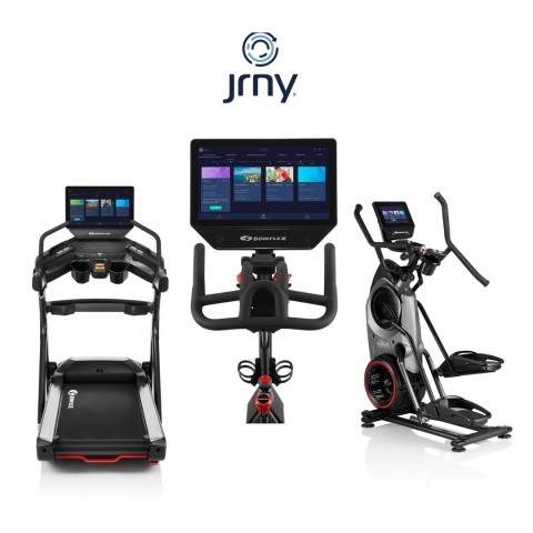 Die neuste, digitalisierte Erfolgsgeschichte von Bowflex® ist die Einführung einer neuen App namens JRNY®. Dies ist die erste Fitness-App, die mit künstlicher Intelligenz ausgestattet ist. Dabei geht es darum, den Kunden zu motivieren, egal auf welchem Fitnesslevel er sich befindet. Der Nutzer hat dann die Möglichkeit, aus einer unendlichen Anzahl verschiedener Trainingsprogramme seine Favoriten zu wählen, wie z.B. benutzerdefinierte, personalisierte oder adaptive Workouts. Basierend auf der Trainingsleistung passt sich die App an das Fitnesslevel des Trainierenden an und bietet immer wieder neue Workouts an. Mit Explore the World kann man auf mehr als 400 realen Strecken aus der ganzen Welt trainieren - neue Strecken werden ständig hinzugefügt. Zusätzlich gibt es gecoachte Trainingsvideos zur Motivation (Personal Trainer). Hier gibt es ein komplettes Angebot an Kraft-, Kardio-, Pilates- und Yogatraining. Jeden Monat kommen neue Workouts hinzu. Darüber hinaus kann man während des Trainings Streaming-Angebote wie Netflix und ähnliche Streaming-Dienste nutzen.