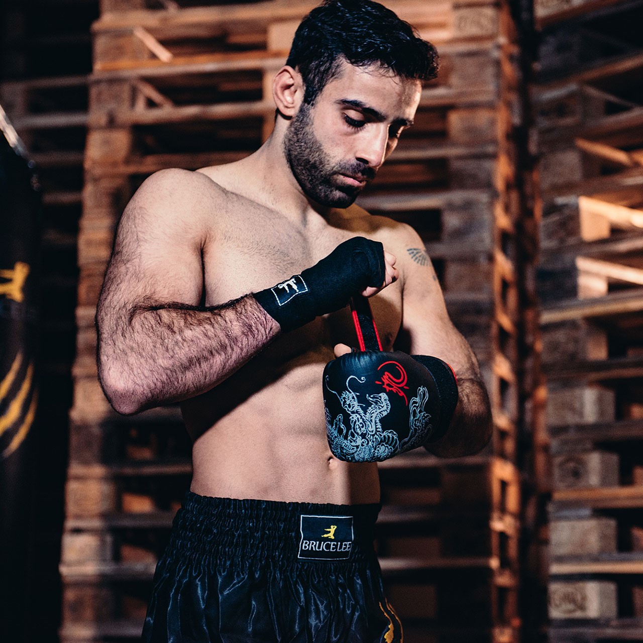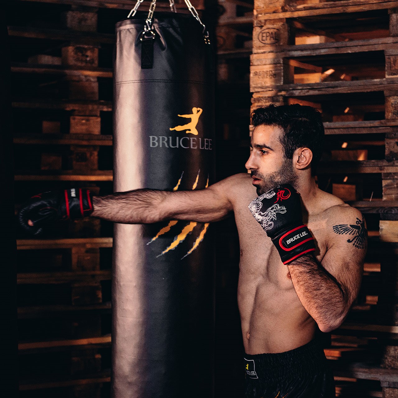 Die Bruce Lee Boxhandschuhe sind speziell für ein Boxsacktraining entwickelt worden und bieten hohen Tragekomfort und Schutz. Die aus echtem Leder gefertigten Boxhandschuhe sind mit einem breiten Klettverschluss versehen, welcher schnelles An- und Abziehen der Handschuhe ermöglicht und zudem Schutz und Stabilisation für das Handgelenk bietet. Zudem wurde auch ein Daumen angenäht. Die Polsterung im Handschuh dämpft Schläge ab und schützt so Finger, Hände und Handgelenk. Die Schutzhandschuhe sind paarweise in den Grössen S - XL erhältlich. Den dazu passenden Boxsack kann man ebenfalls im Onlineshop kaufen.