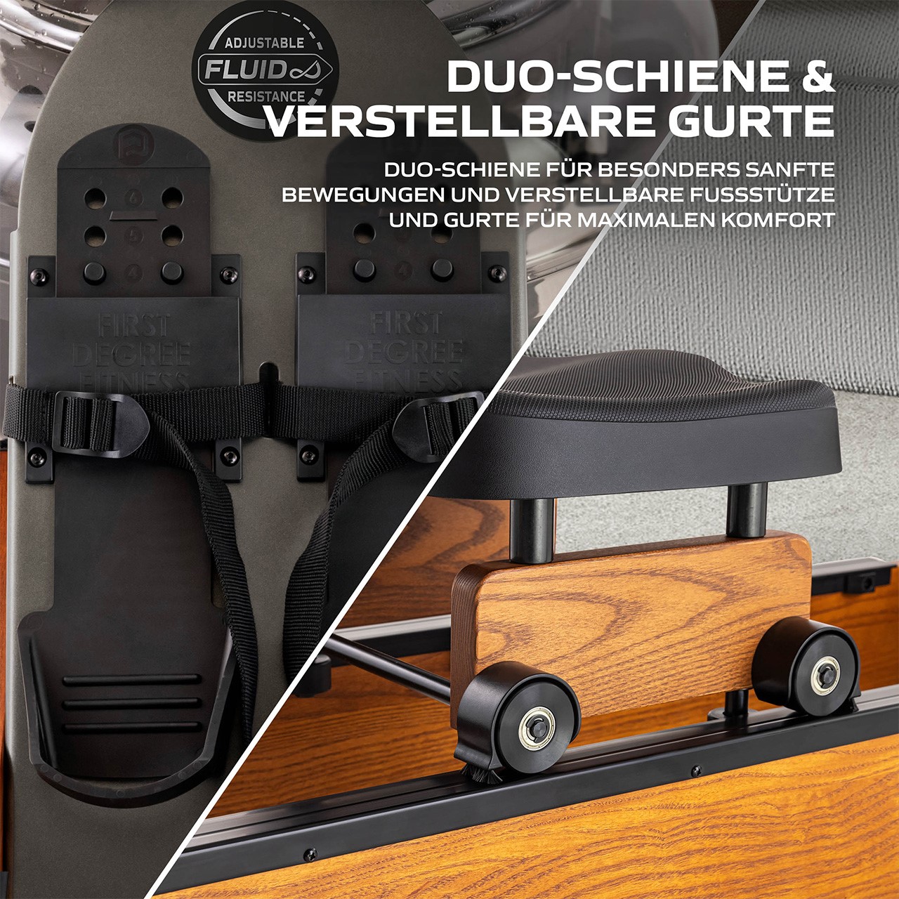 1 x Fluid Rower Apollo Pro XL Wasser Holz Rudergerät Dual Rail