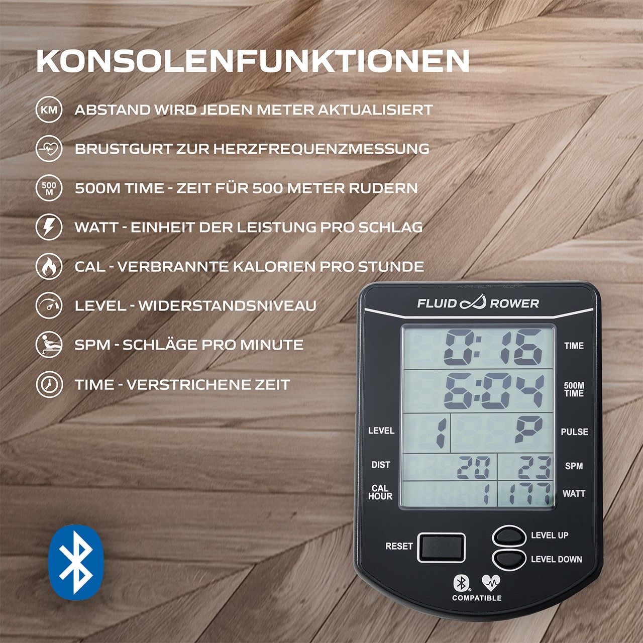 Erleben Sie die überlegene Qualität des Fluid Rower Apollo Plus (24FAPP0000): ein Rudergerät mit Wasserwiderstand, das die Kraft von Stahl mit der zeitlosen Eleganz von amerikanischem Eschenholz vereint. Das Modell in edler Buchenfarbe bringt nicht nur ein authentisches Rudererlebnis in Ihr Zuhause, sondern auch ein stilvolles Design.