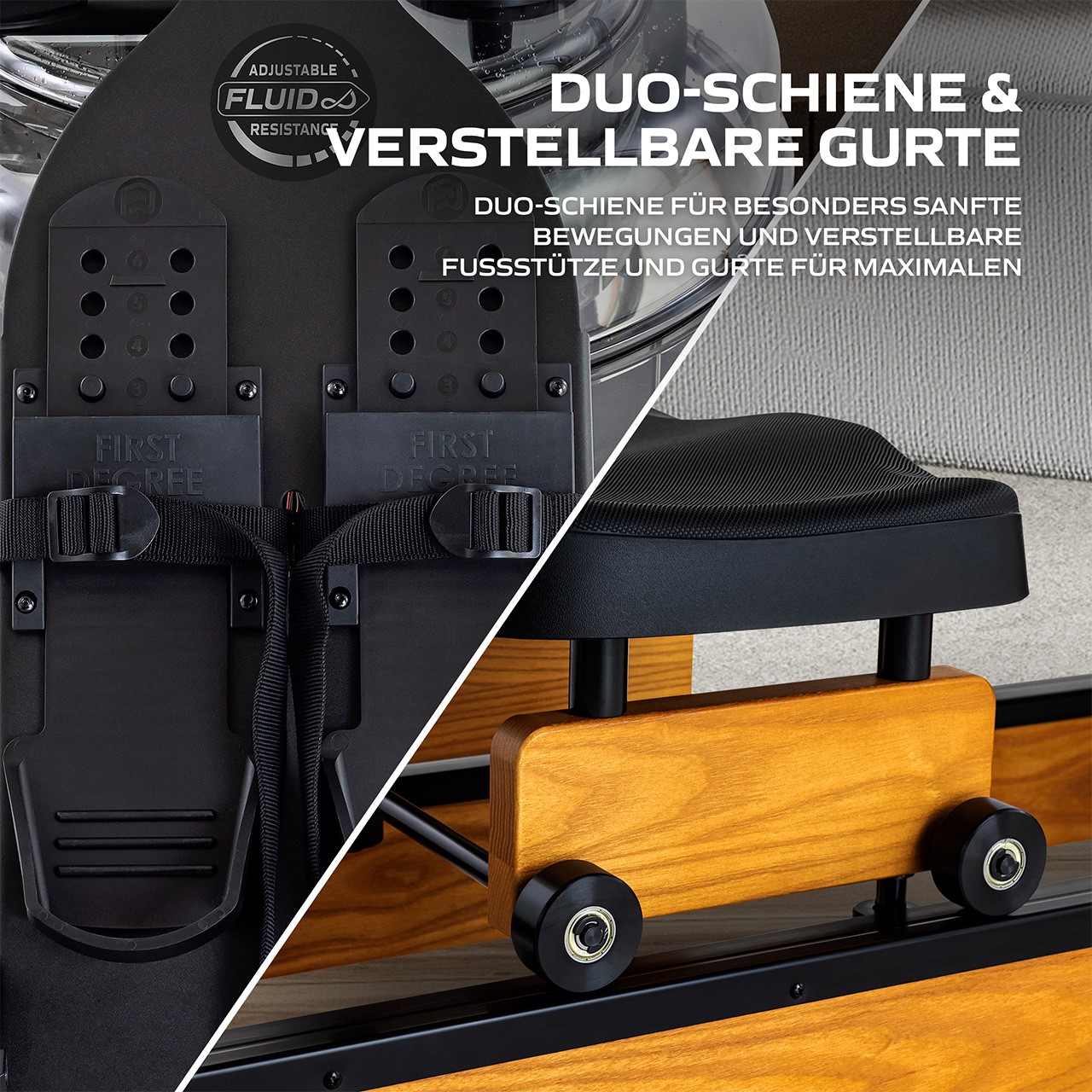1 x Fluid Rower Apollo Plus Dual Rail Wasserrudergerät aus Holz