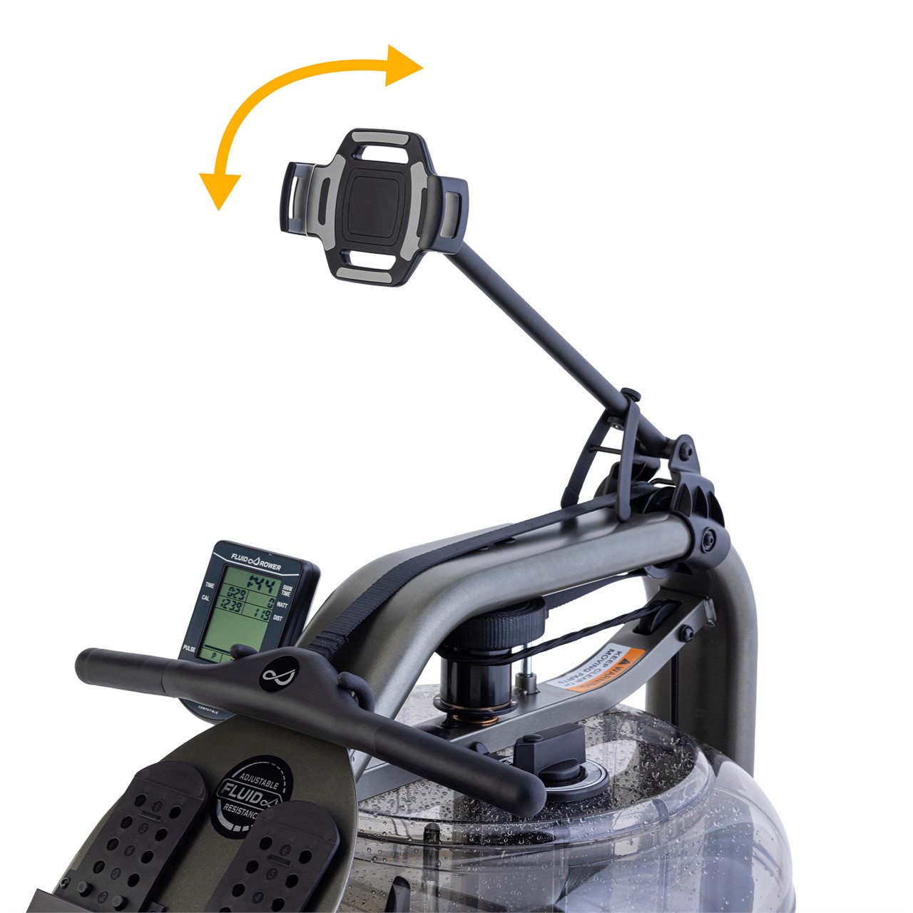 Diese extra lange und stabile Fluid Rower Tablethalterung (23FTBHP0XL) wurde speziell für Tablets von 6 bis 13 Zoll entwickelt und positioniert Ihr Gerät genau dort, wo Sie es beim Training benötigen: im optimalen Sichtfeld, perfekt abgestimmt auf Ihre Ruderbewegung. So wird jede Einheit noch realitätsnäher, motivierender und abwechslungsreicher – ideal in Verbindung mit beliebten Trainings-Apps wie Fluid Connect, Kinomap, Regatta oder Tunturi Routes.