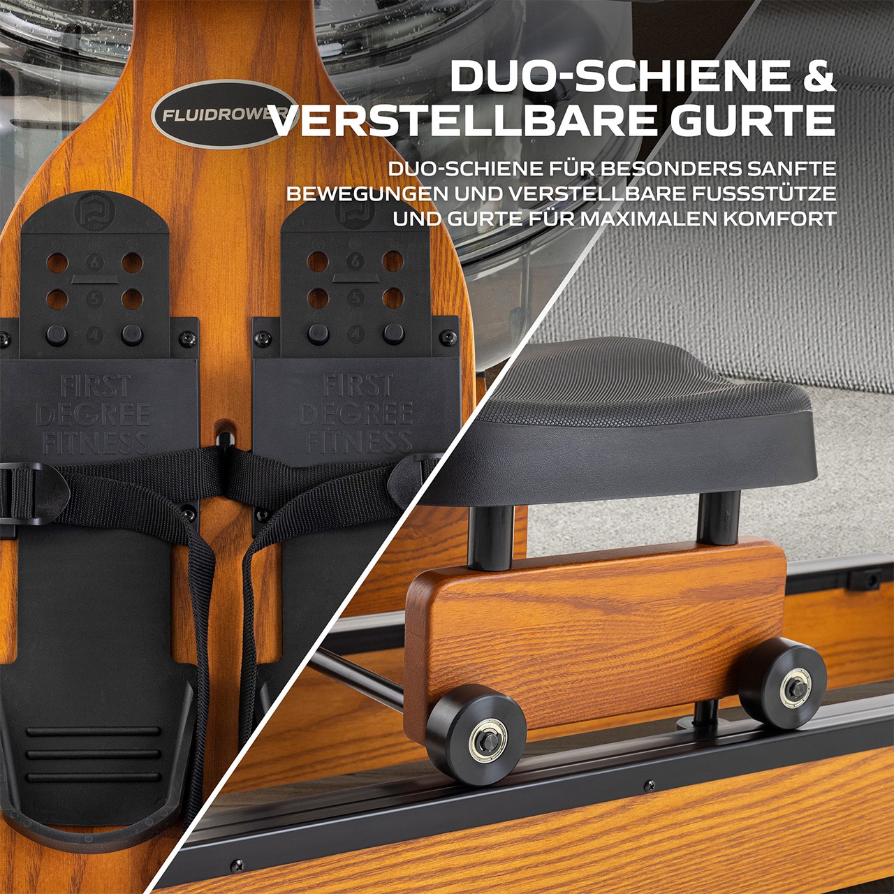 Erleben Sie das stilvolle Rudergerät Fluid Rower Viking 3 V (22FVK3V0ST) – ein Meisterwerk aus echtem amerikanischem Eschenholz, das höchste Ansprüche an Design und Funktionalität erfüllt. Dieses erstklassig verarbeitete Rudergerät bringt Eleganz in Ihr Zuhause und bietet gleichzeitig ein authentisches und effektives Trainingserlebnis.