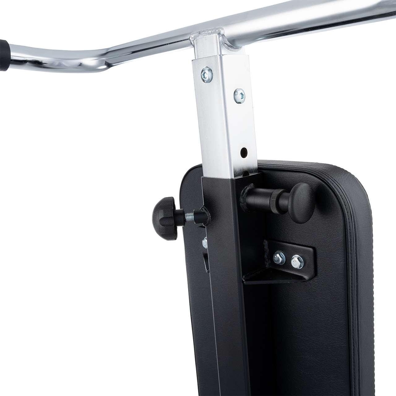 Die 58 cm breiten Handgriffe sind ergonomisch geformt und mit komfortablem Gummi überzogen, sodass Sie auch bei intensivem Training festen Halt und optimalen Komfort geniessen.