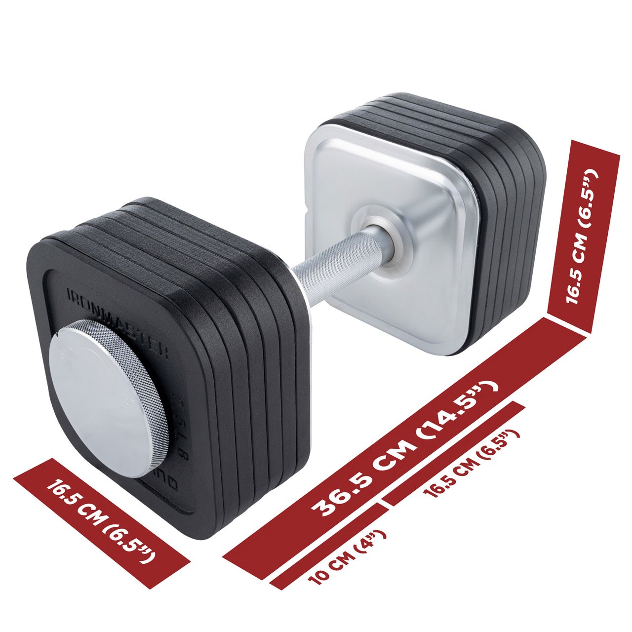 Die Ironmaster-Hanteln werden aus hochwertigem, hochfestem Stahl gefertigt. Der patentierte Verriegelungsmechanismus verhindert zuverlässig Klappern oder Lösen der Gewichte. Die verchromten Stahlgriffe mit diamantgerändeltem Griff sorgen für optimalen Halt – selbst bei intensiven Trainingseinheiten. Die Hanteln sind so robust, dass sie selbst nach harten Sets auf dem Boden keine Schäden nehmen.