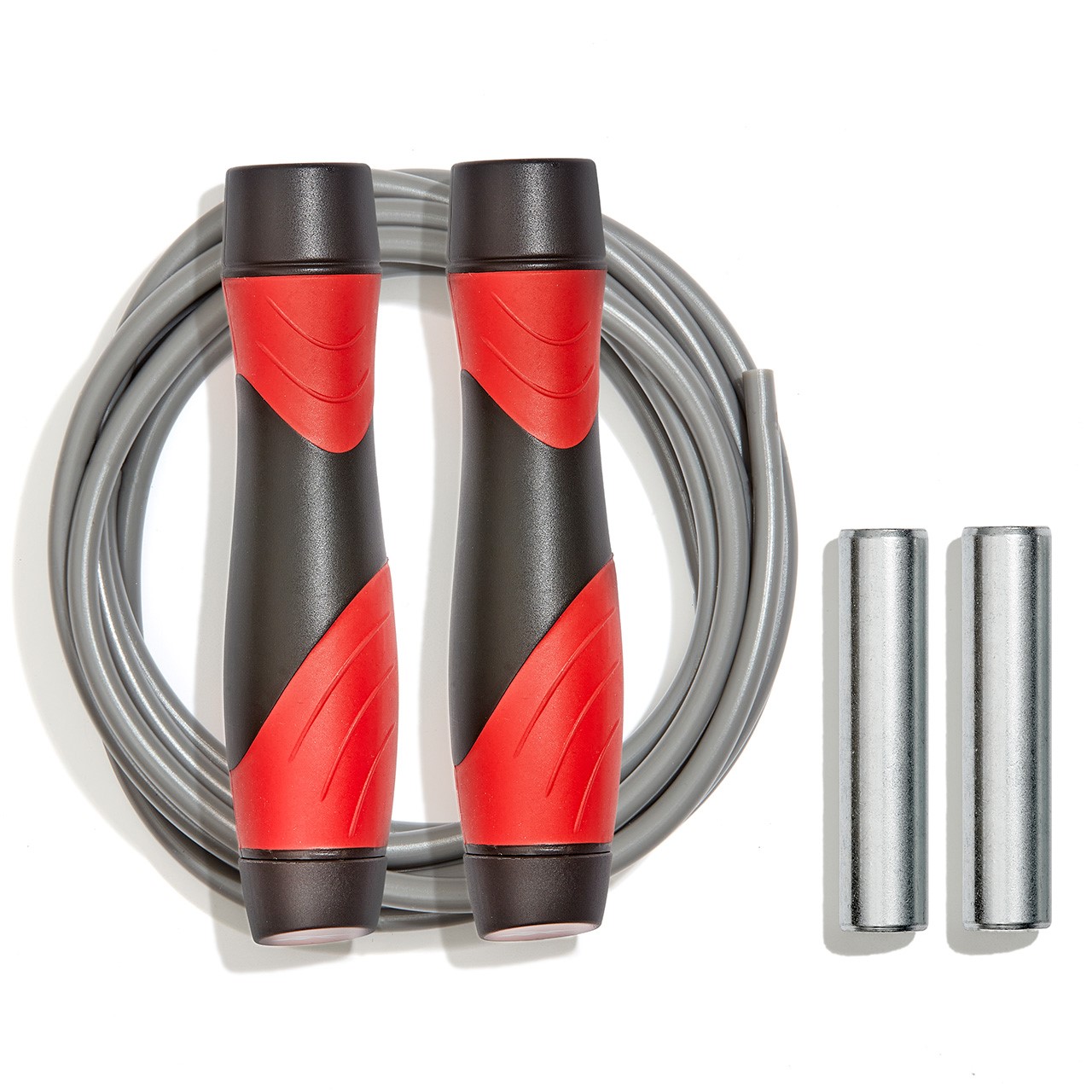 Komplett mit ergonomisch geformten Griffen mit gummierten Kontaktzonen passt das Springseil leicht in Ihre Handflächen- und Daumenpositionen für einen stabileren Griff während Ihrem Training. Die gepolsterten Griffe sind für die Aufnahme von zwei 150-g-Metallgewichtseinsätzen ausgelegt und können belastet werden, um die Intensität jeder Drehung drastisch zu erhöhen.