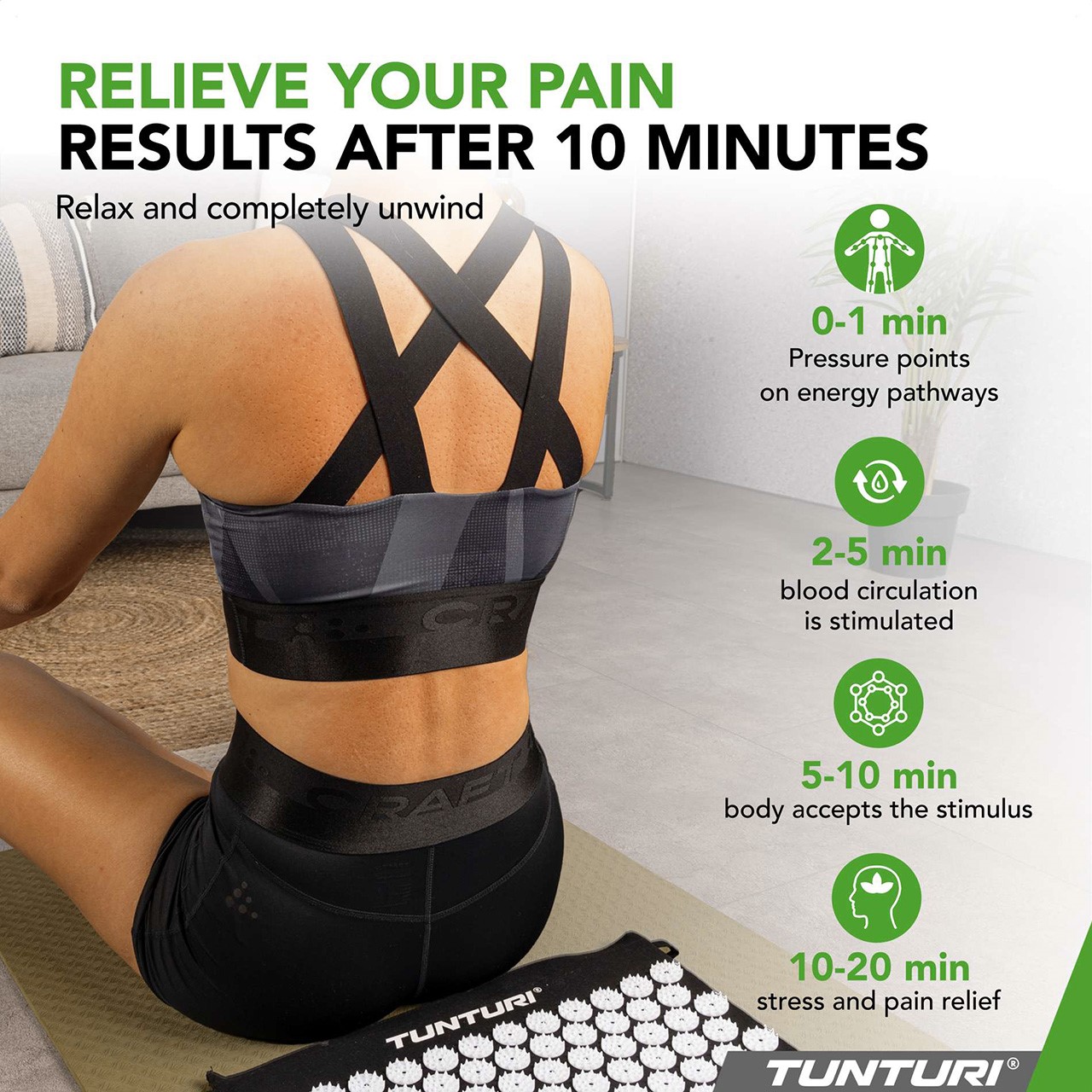 Möchten Sie mehr über die Anwendung der Nadelmatte erfahren? Mit der kostenlosen Tunturi Training App erhalten Sie detaillierte Erklärungen zu den verschiedenen Muskelgruppen und hilfreiche Tipps zu den besten Haltungen. Der integrierte Timer hilft Ihnen, die optimale Zeit für jede Position zu finden. Laden Sie die App kostenlos im App Store oder Play Store herunter und nutzen Sie diese praktische Unterstützung bei Ihrem Training.