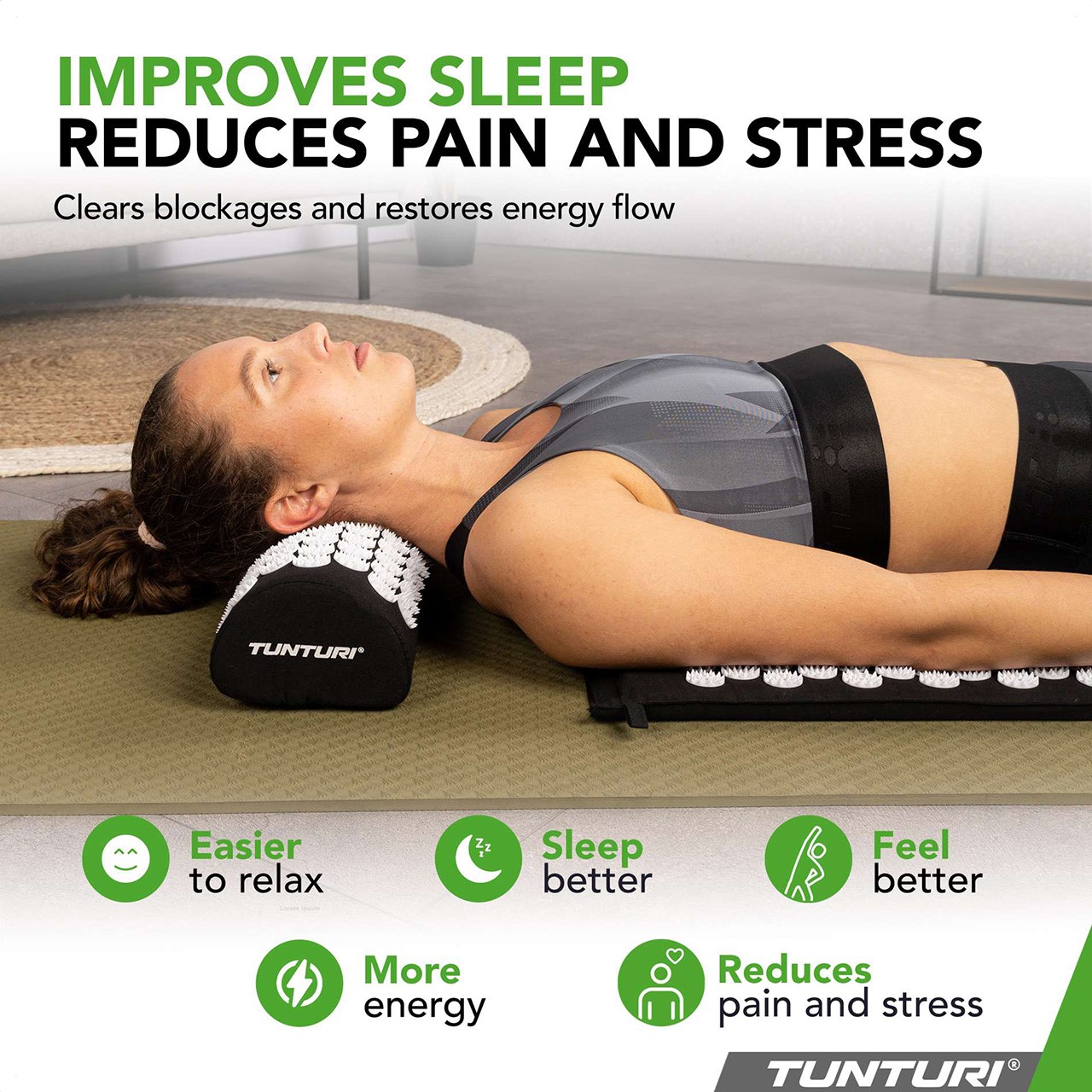 Befreien Sie sich von Stress, Schlafstörungen, Rückenschmerzen und einem niedrigen Energieniveau – mit der Tunturi Akupressurmatte inkl. Kissen. In nur wenigen Minuten täglich aktivieren Sie Ihre körpereigenen Selbstheilungskräfte. Über 8'000 gezielt platzierte Druckpunkte lösen Verspannungen, lindern Schmerzen, regen die Energieflüsse an und verbessern Ihre Schlafqualität. Erleben Sie eine tiefgehende Entspannung und spüren Sie, wie Ihr Wohlbefinden auf ein neues Level gehoben wird.