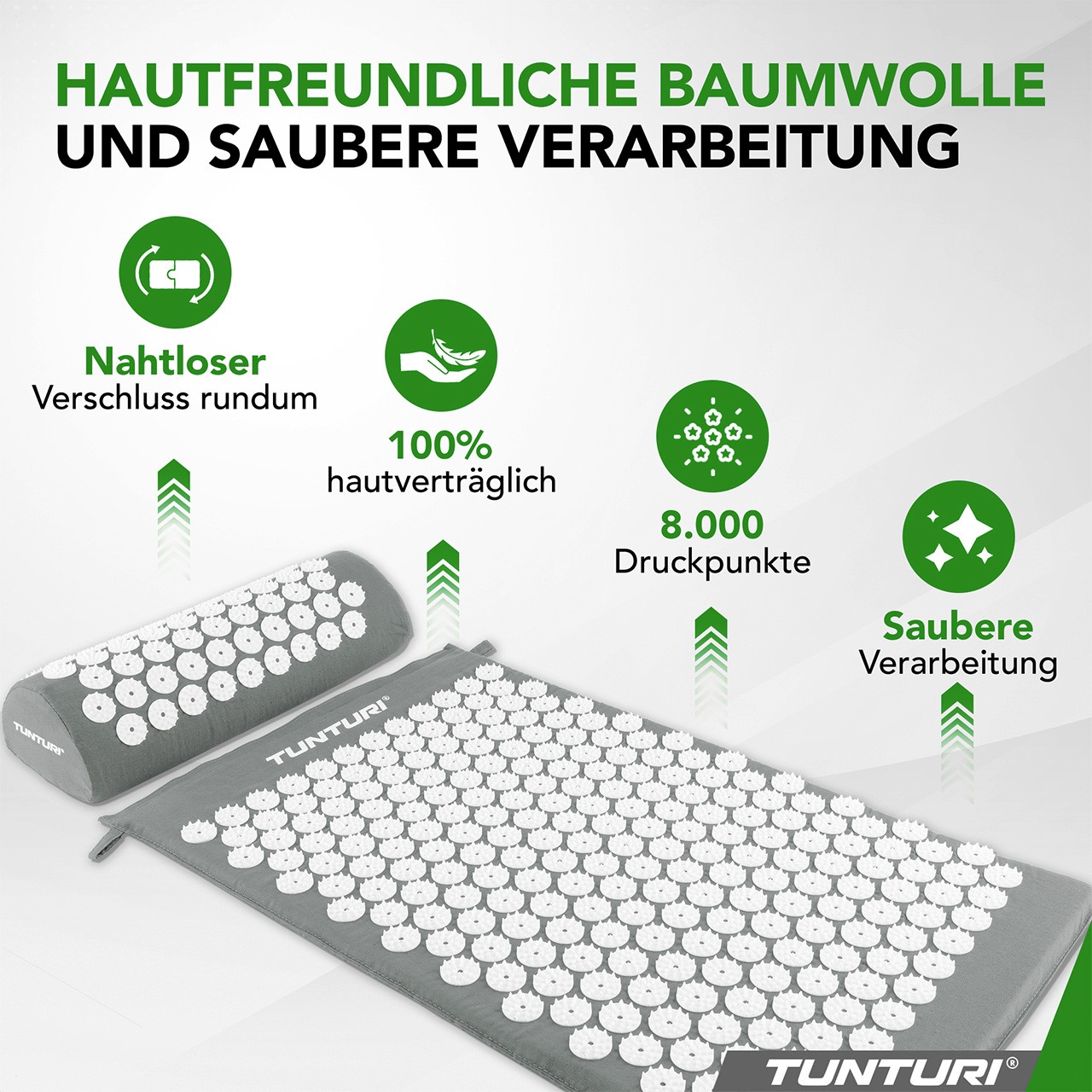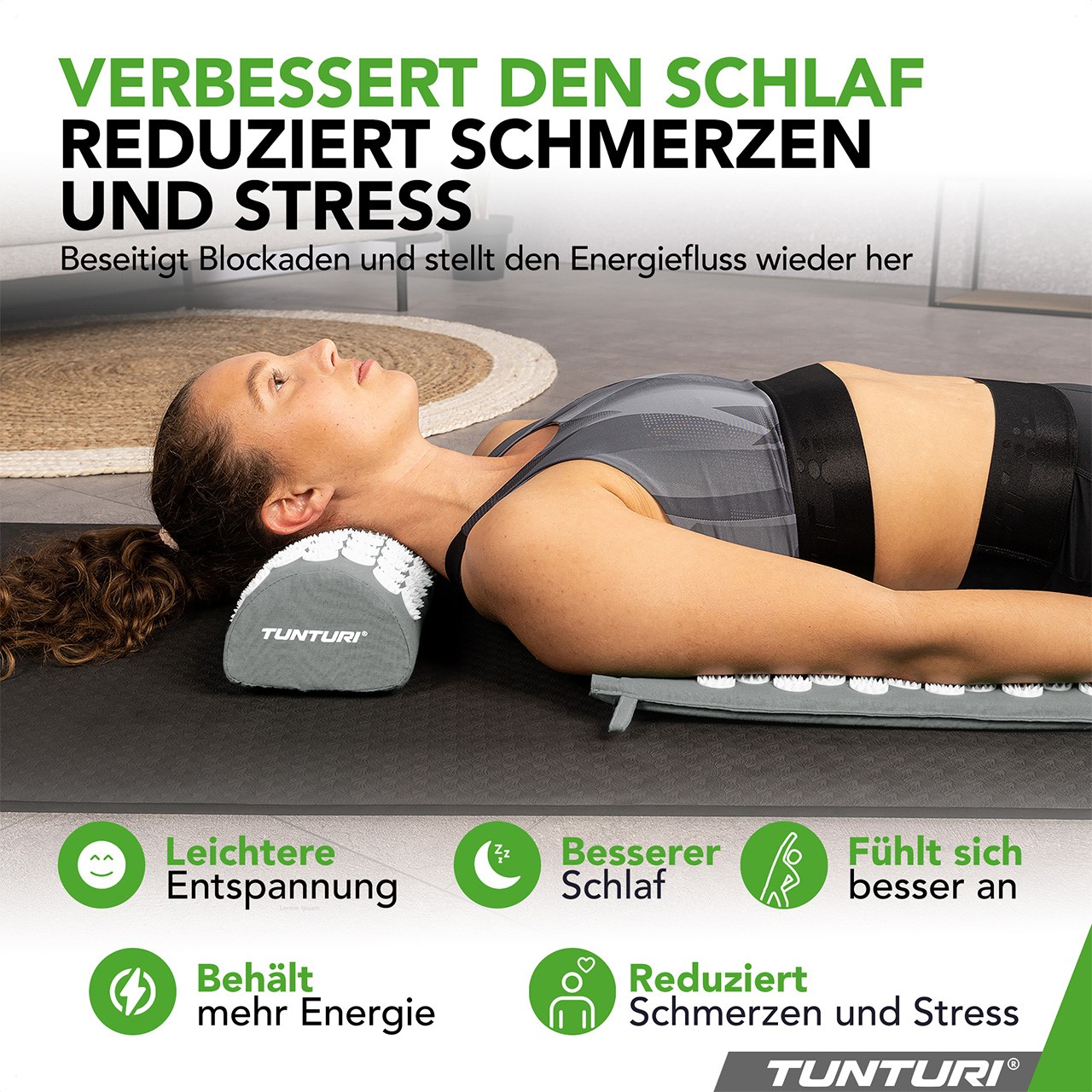 Befreien Sie sich von Stress, Schlafstörungen, Rückenschmerzen und einem niedrigen Energieniveau – mit der Tunturi Akupressurmatte inkl. Kissen. In nur wenigen Minuten täglich aktivieren Sie Ihre körpereigenen Selbstheilungskräfte. Über 8'000 gezielt platzierte Druckpunkte lösen Verspannungen, lindern Schmerzen, regen die Energieflüsse an und verbessern Ihre Schlafqualität. Erleben Sie eine tiefgehende Entspannung und spüren Sie, wie Ihr Wohlbefinden auf ein neues Level gehoben wird.