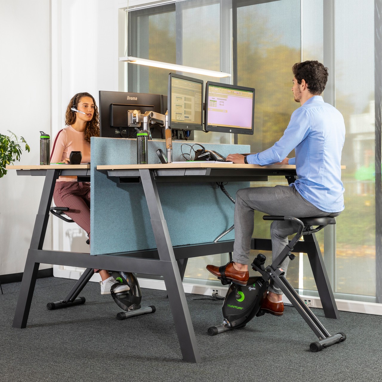 Das Cardio Fit D20 ist ein vollwertiger Heimtrainer ohne Lenker, der problemlos unter jeden Schreibtisch passt – ideal in Kombination mit einem Stehpult. Setzen Sie sich einfach auf den Sattel, treten Sie in die Pedale und bleiben Sie konzentriert bei der Arbeit. Das Beste: Das Deskbike ist flüsterleise, sodass Sie weder Ihre Kollegen noch sich selbst stören.