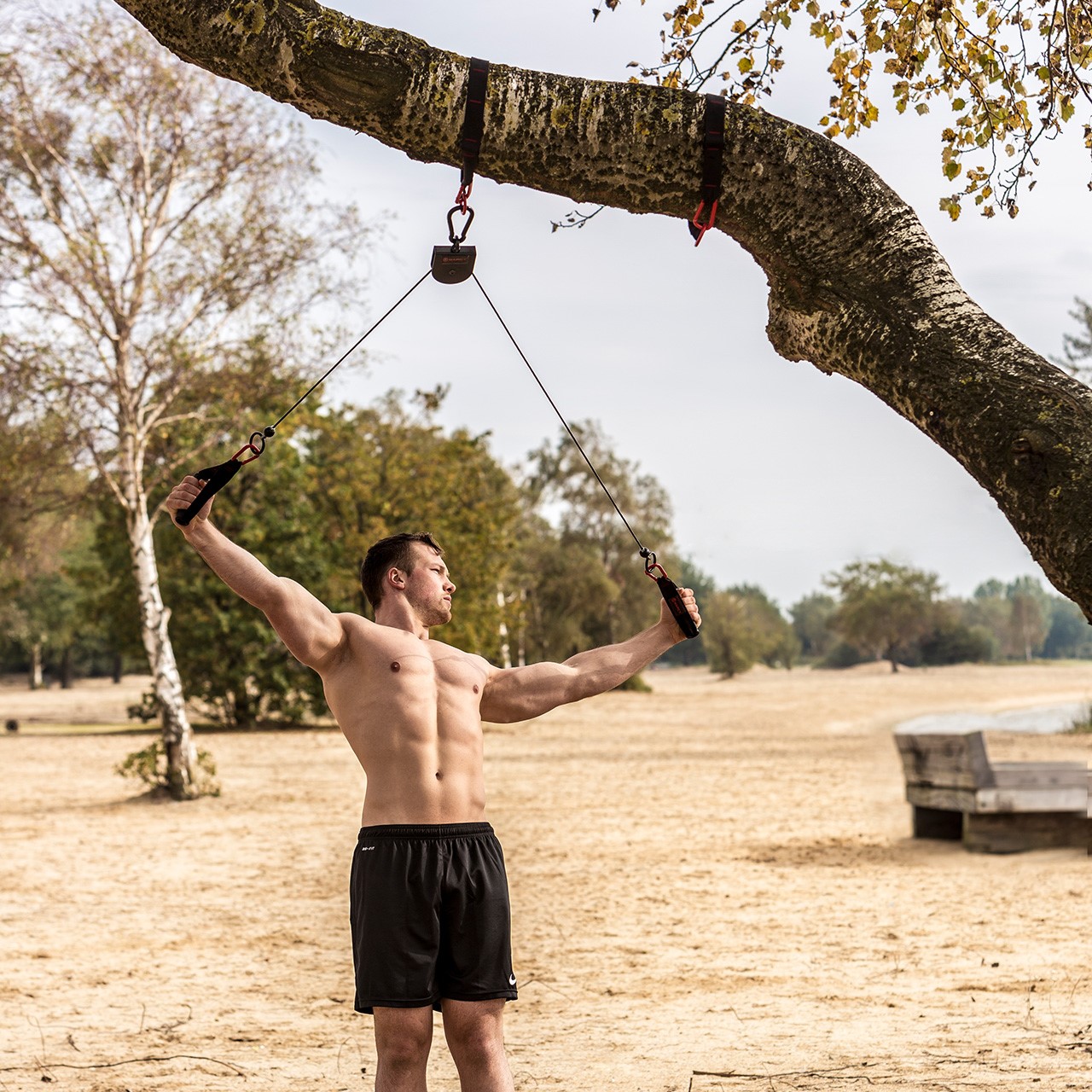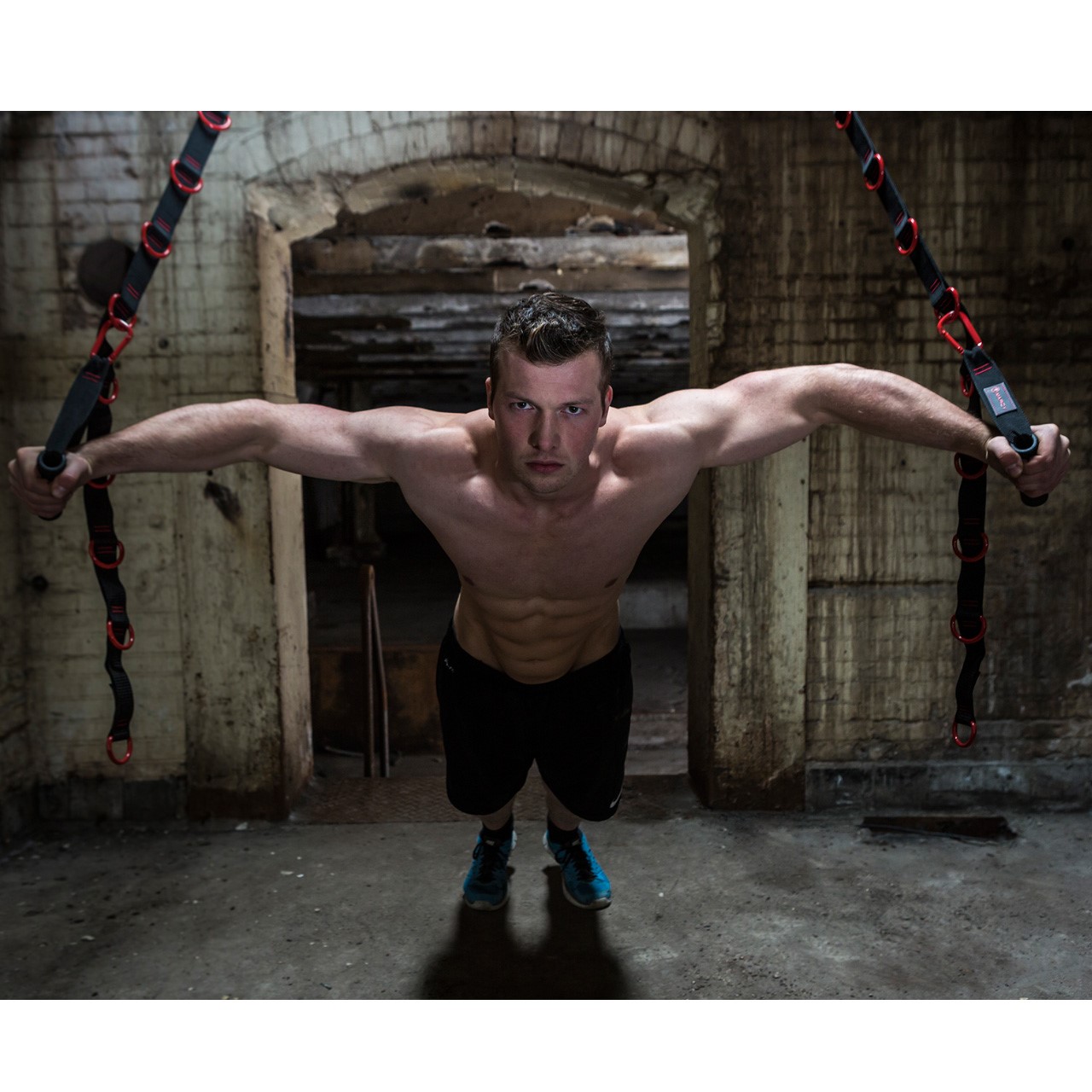 Extrem vielseitiges Fitnessset für drinnen und draussen. Das Training wird mir eigener Kraft durchgeführt und ist deshalb sehr anstrengend aber auch sehr effektiv. Es stärkt die Ober- und Unterkörpermuskulatur und verbessert das Gleichgewicht. Die Intensität kann dann natürlich durch die zusätzliche Gewichterhöhung durch eine Gewichtweste noch erhöht werden.