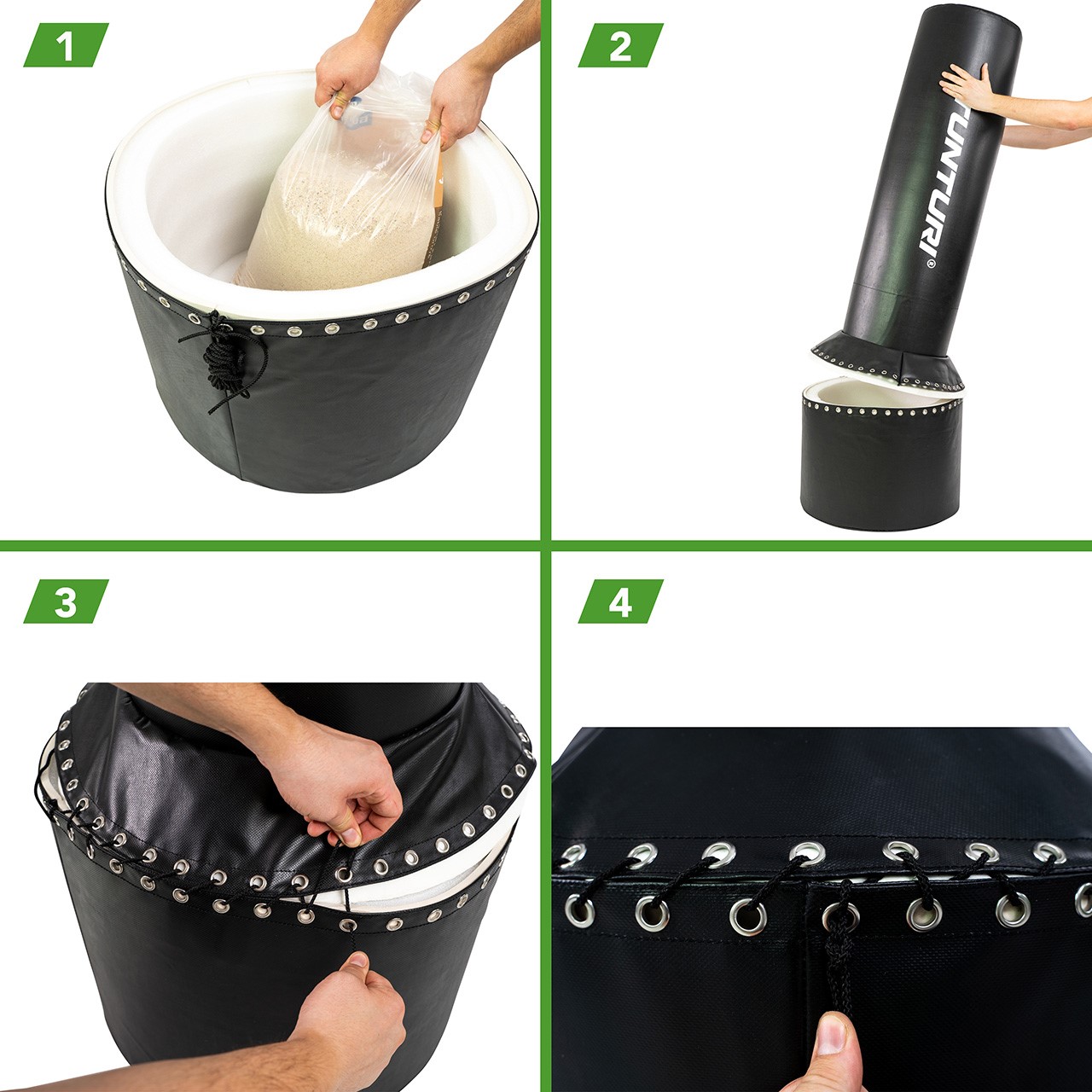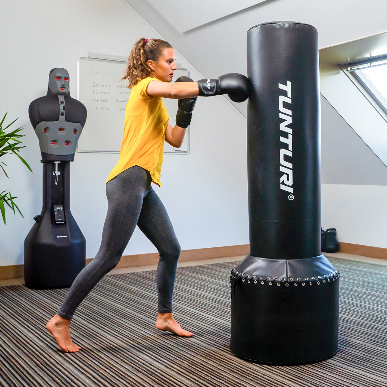 Der Tunturi Standboxsack (14TUSBO073) hilft, die Intensität im Training zu steigern sowie die Schlag- und Kickfähigkeiten zu verbessern. Der Schlagständer ist sehr robust und widerstandsfähig und somit ein lange haltbares Trainingsgerät. Die Basis ist mit Sand auffüllbar (bis max. 90 kg) um einen festen Stand garantieren zu können. So fällt der freistehende Boxständer im Training nicht um. Koordination sowie Ausdauer wird durch ein Training an diesem Boxständer gefördert und verbessert.