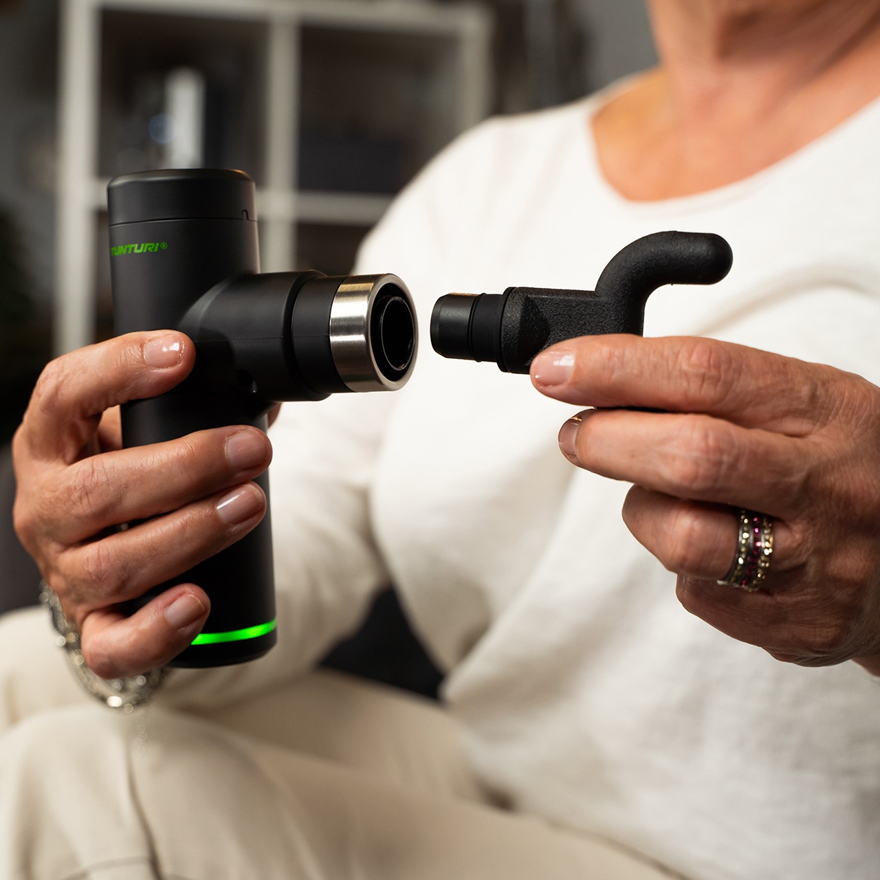 Die 4 austauschbaren Massageköpfe machen das Gerät vielseitig einsetzbar – von punktueller Tiefenmassage bis hin zur grossflächigen Muskelentspannung. Egal ob Rücken, Beine, Arme oder Nacken – mit der Tunturi Mini Massagepistole stimulieren Sie gezielt den Blutkreislauf, reduzieren Verspannungen und beschleunigen die Regeneration.