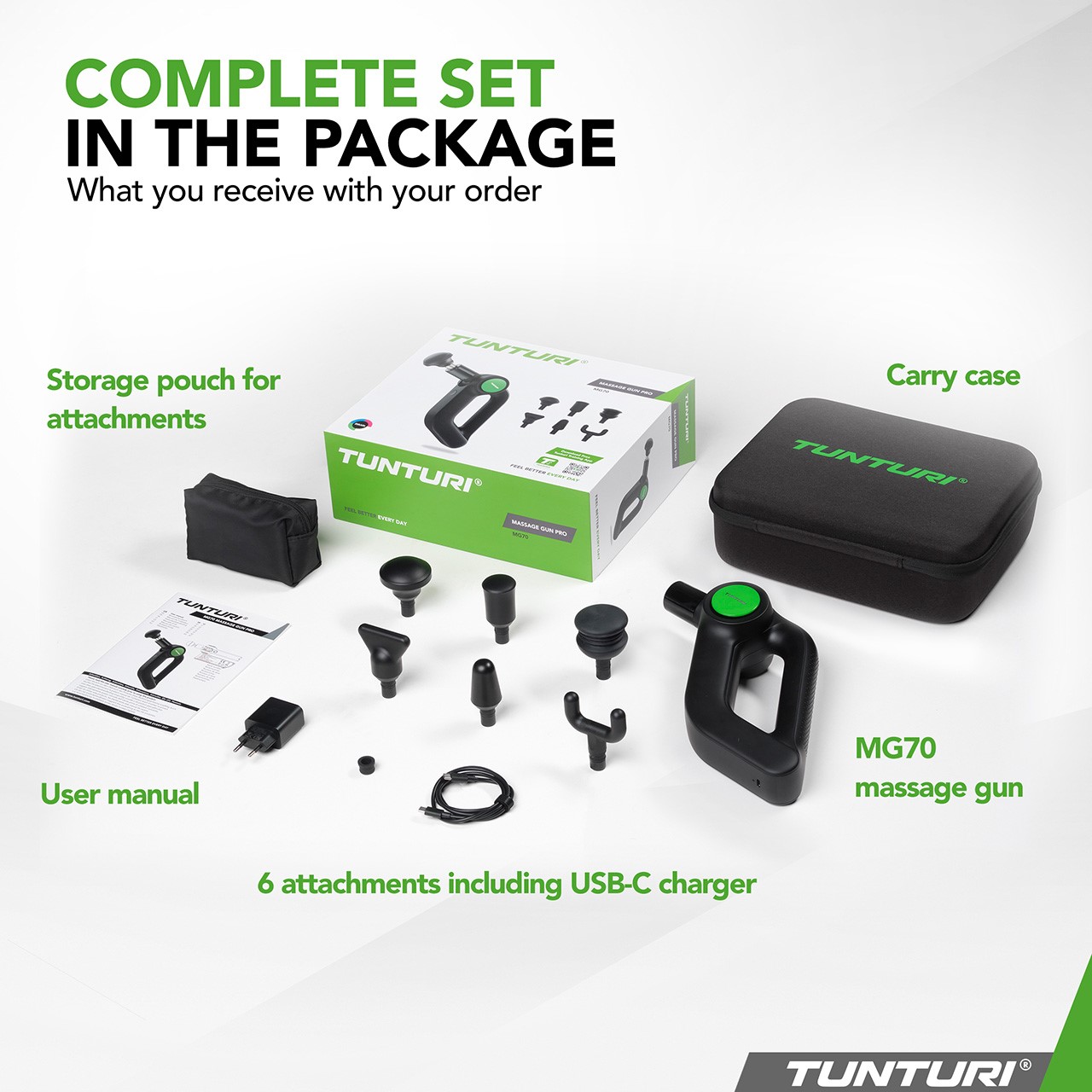 1 x Tunturi MG70 Massage Gun inkl. USB-C Ladekabel, Adapter und Aufbewahrungskoffer