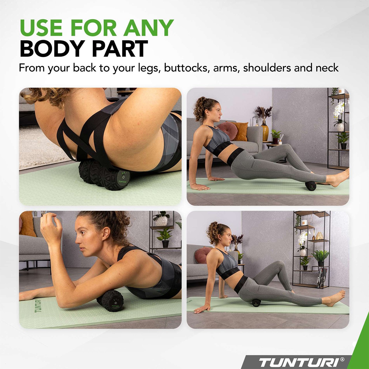 Leiden Sie unter verspannten Muskeln, Stress oder Muskelkater? Der vibrierende Massageroller von Tunturi verfügt über 3 ergonomisch geformte Zonen, die sich den Formen Ihres Körpers anpassen und für maximale Entspannung und Linderung sorgen. Dank der Kombination aus Vibration und Massage, haben Sie die vollständigste Massagebehandlung in einem kompakten Gerät. Mit 3 Geschwindigkeiten, 1 Programm und LED-Anzeige.