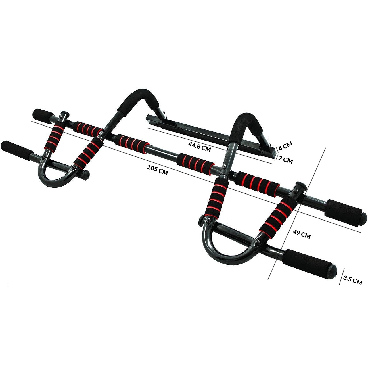 Die Klimmzugstange Deluxe ist mehr als nur ein einfaches Türreck. Neben der Verwendung im Türrahmen können Sie es problemlos am Boden einsetzen, um verschiedene Übungen auszuführen. Trainieren Sie Ihre Brust mit Liegestützen, Ihre Trizeps mit Dips oder Ihre Bauchmuskulatur mit Rumpfbeugen. Dank der variablen Griffpositionen an den gepolsterten Schaumstoffgriffen können Sie Ihr Training individuell anpassen und so optimale Ergebnisse erzielen.