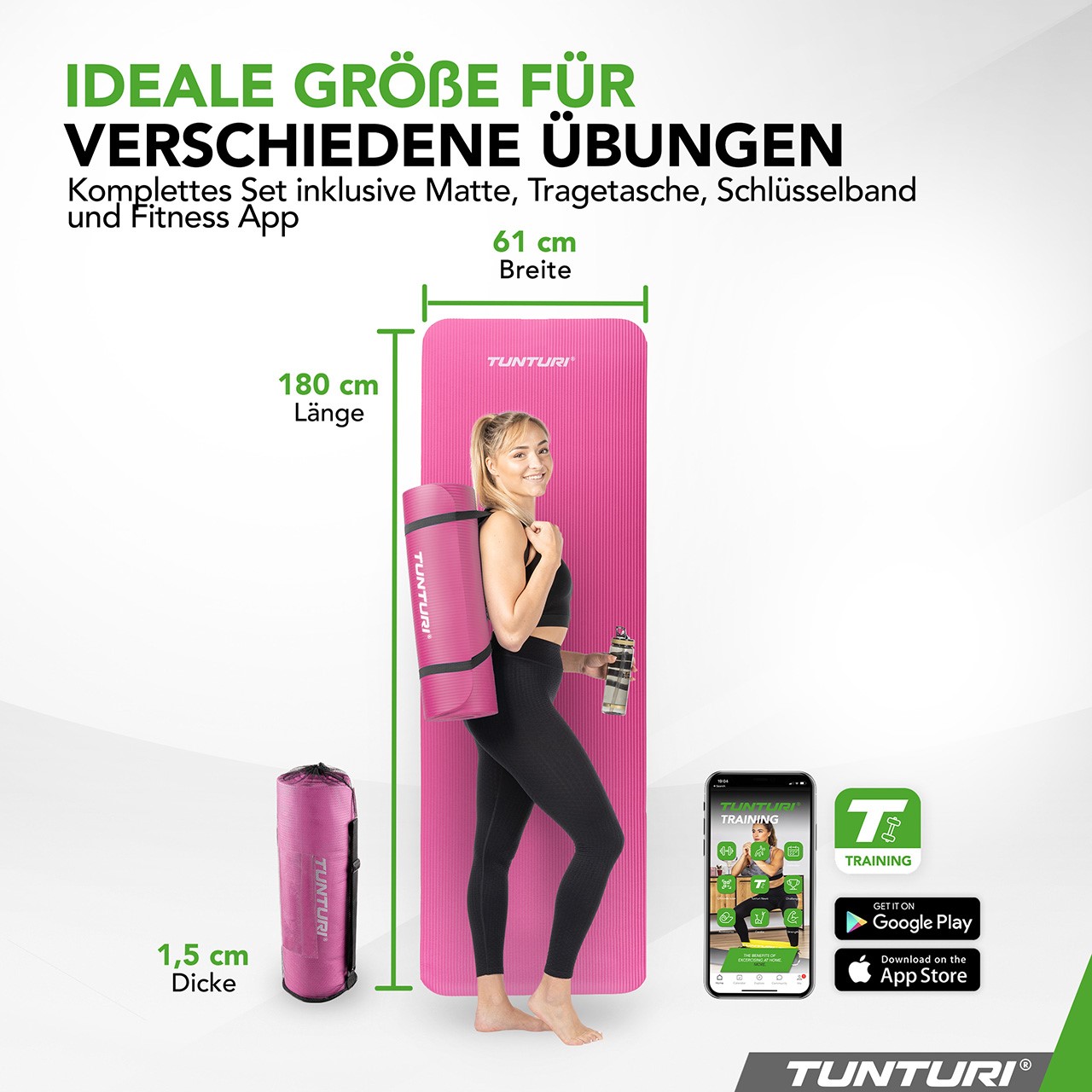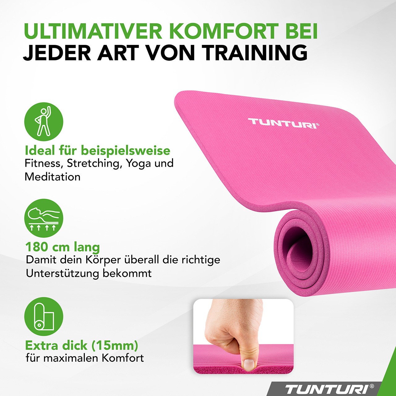 Steigern Sie Ihre Fitness mit der Tunturi NBR-Fitnessmatte, geniessen Sie den Komfort, den Sie für Ihr Training benötigen und verwandeln Sie jede Übung in ein angenehmes Erlebnis!
