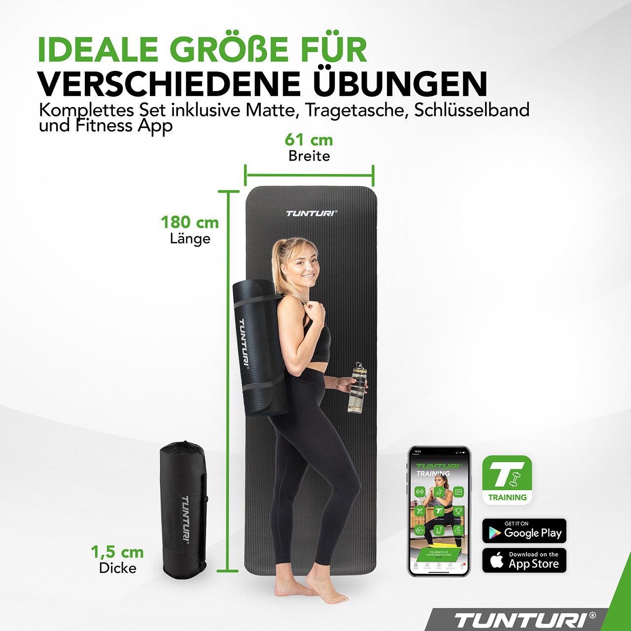 Die Tunturi NBR-Fitnessmatte aus hochwertigem High-Density-Schaum, bietet einzigartigen Komfort und Funktionalität. Mit ihrer grosszügigen Länge von 180 cm, einer Breite von 60 cm und einer Dicke von 1.5 cm ist diese Matte der perfekte Begleiter für Ihr Training, sei es zu Hause oder im Fitnessstudio.