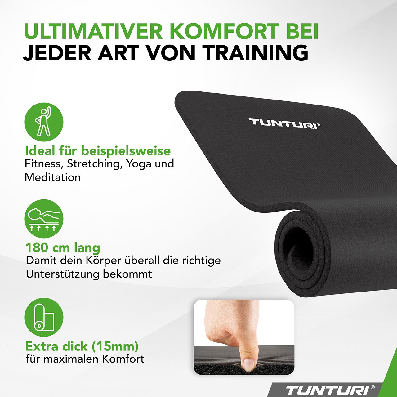 Steigern Sie Ihre Fitness mit der Tunturi NBR-Fitnessmatte, geniessen Sie den Komfort, den Sie für Ihr Training benötigen und verwandeln Sie jede Übung in ein angenehmes Erlebnis!