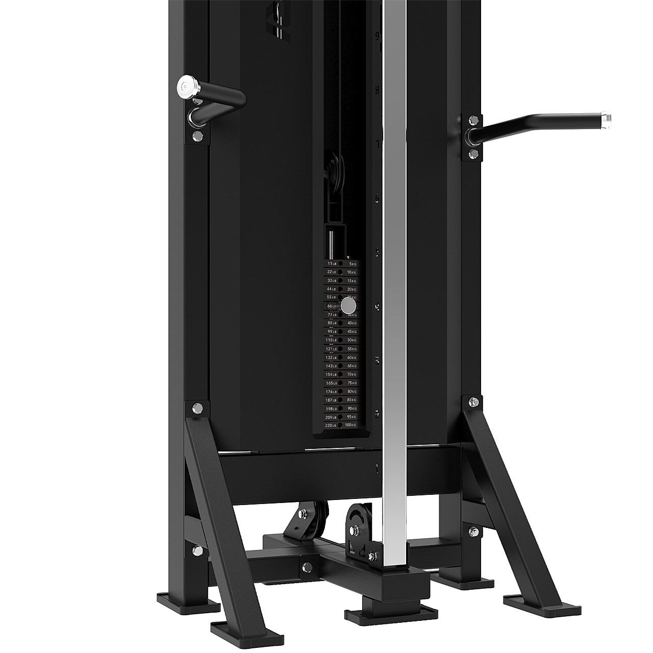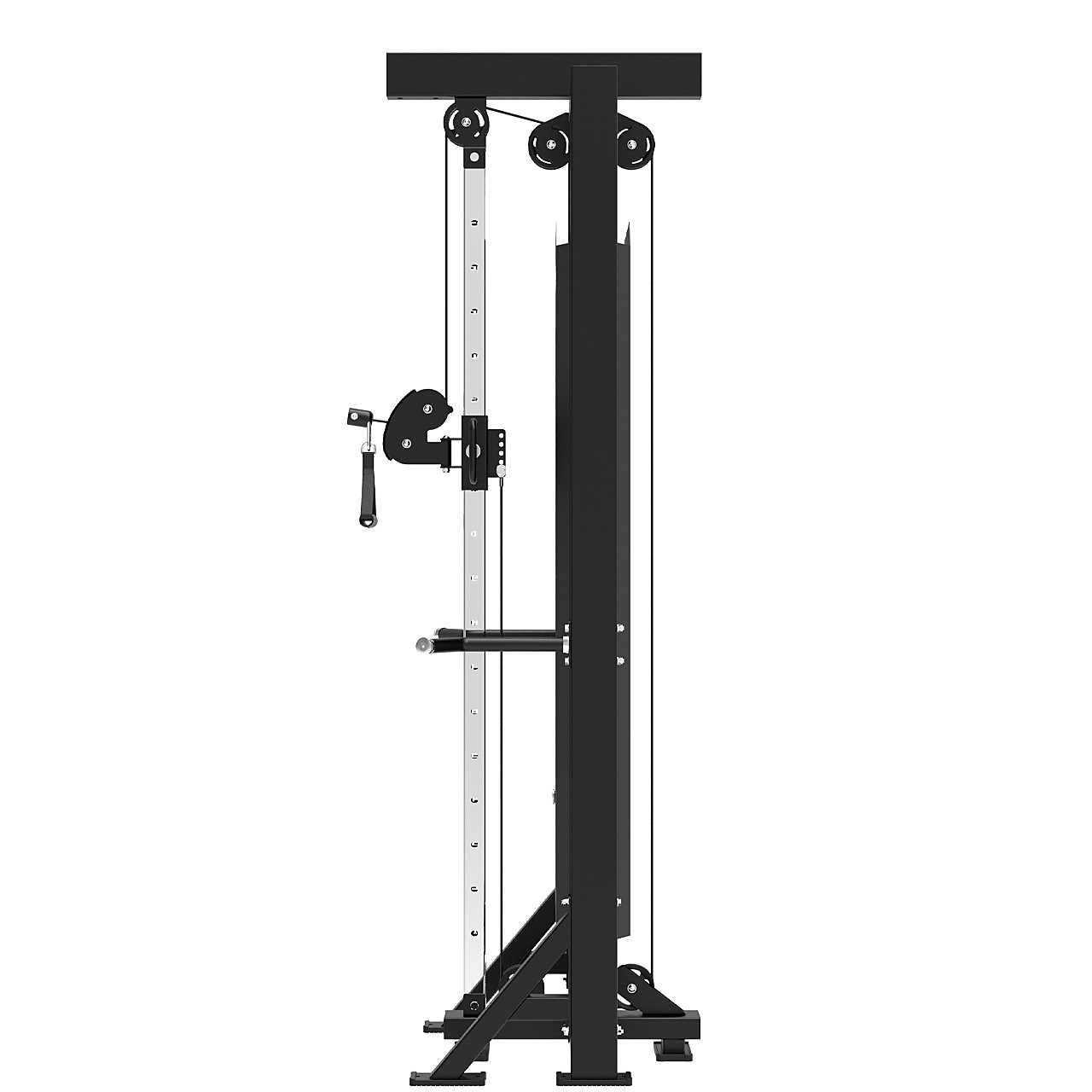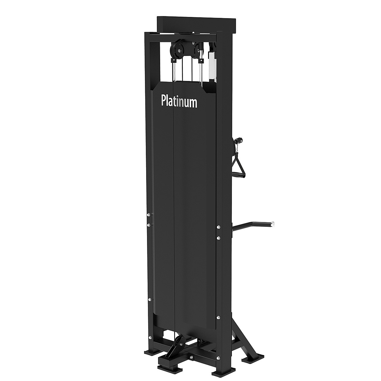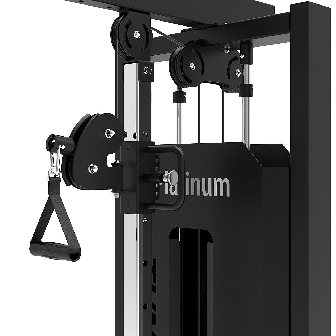 Mit der Platinum Single Station erweitern Sie Ihr Trainingsspektrum sofort. Die höhenverstellbare Seilrolle eignet sich ideal für zahlreiche Übungen – von Trizeps-Pushdowns über Woodchops bis hin zu Seitheben. Dank der seitlichen Haltearme trainieren Sie dabei stets sicher und kontrolliert, selbst bei höheren Gewichten.