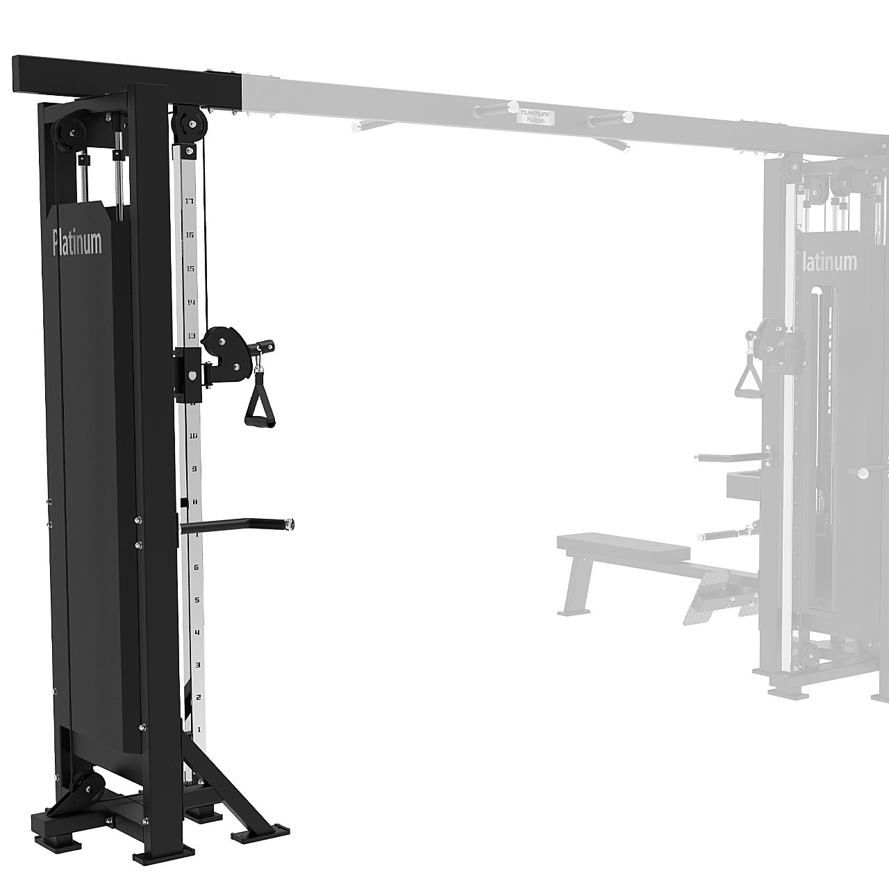 Die Tunturi Platinum Single Station (25PVS38000) wurde speziell als Ergänzung zur bestehenden 4-in-1-Multistation entwickelt. Mit einem zusätzlichen Seilzugrahmen und seitlichen Stützarmen eröffnen Sie sich noch mehr Vielfalt und Kontrolle in Ihrem Training – und schaffen die Basis für ein vollständiges 5-in-1-System.