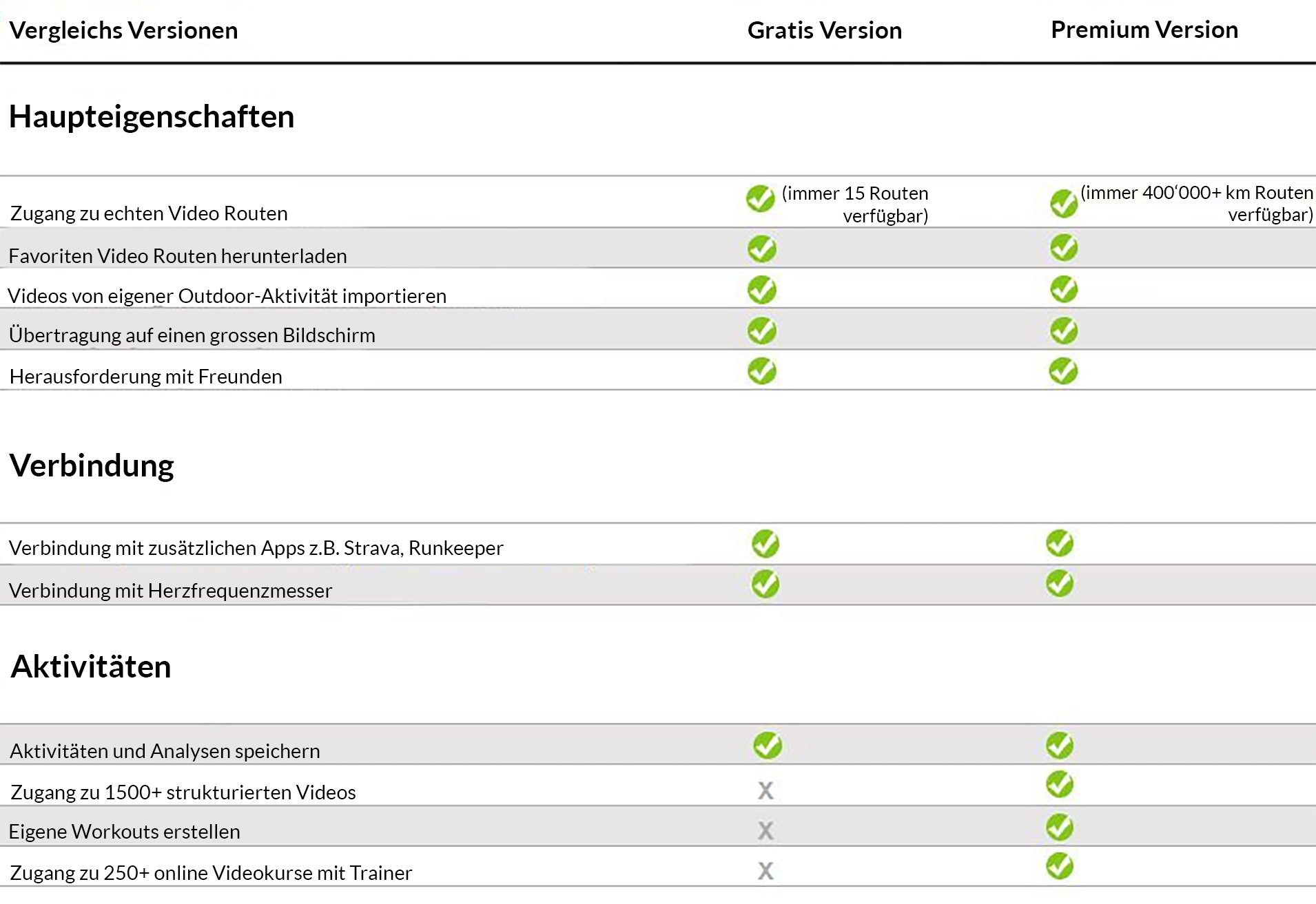 Mit der Premium Version von Tunturi Routes haben Sie vollen Zugriff auf alle Routenvideos, gesamte Online-Coaching-Videos, anpassbare strukturierte Workouts und den GPS-Importmodus.