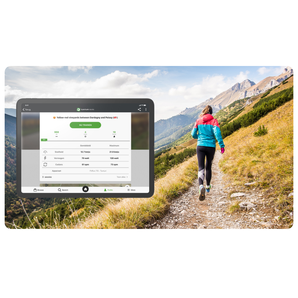 Tunturi Routes kann mit den meisten Tunturi Ausdauergeräten verbunden werden, die über eine Bluetooth-Verbindung verfügen. Sehen Sie sich die vollständige Liste der Cardio Geräte an, die mit Tunturi Routes kompatibel sind. Steht das Radfahren auf die Alpe 'D Huez auf Ihrer Bucket Liste, aber Sie finden den Berg noch zu steil? Sie können den Schwierigkeitsgrad eines Videos ganz einfach anpassen, sodass Sie Berge in Ihrem eigenen Niveau und Tempo erklimmen können. Ist der Weg vor Ihnen nicht herausfordernd genug? Erhöhen Sie einfach den Schwierigkeitsgrad und steigern Sie Ihr Fitnesslevel.
