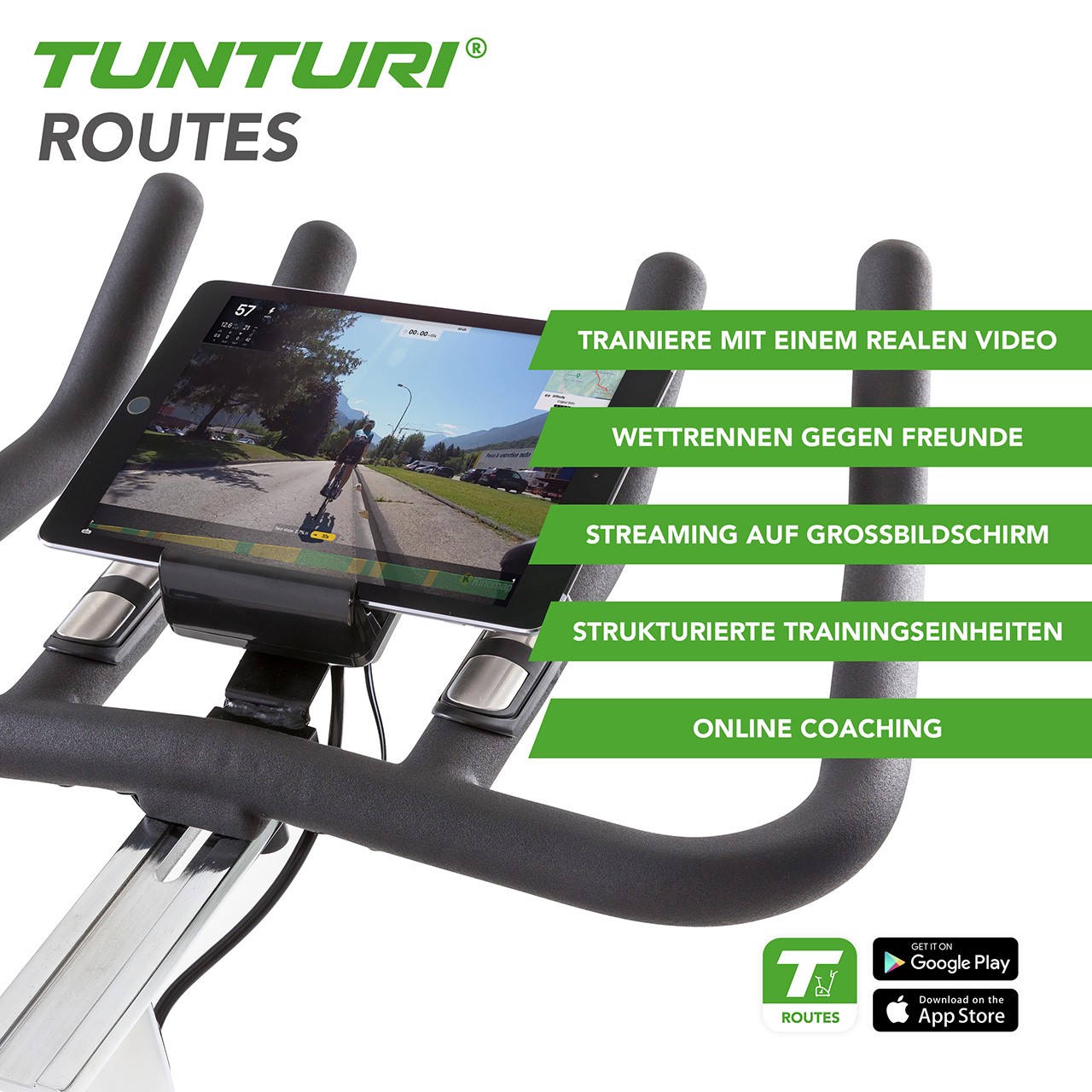 App-Kompatibilität: Tunturi Routes, i-Console+, Kinomap und Zwift