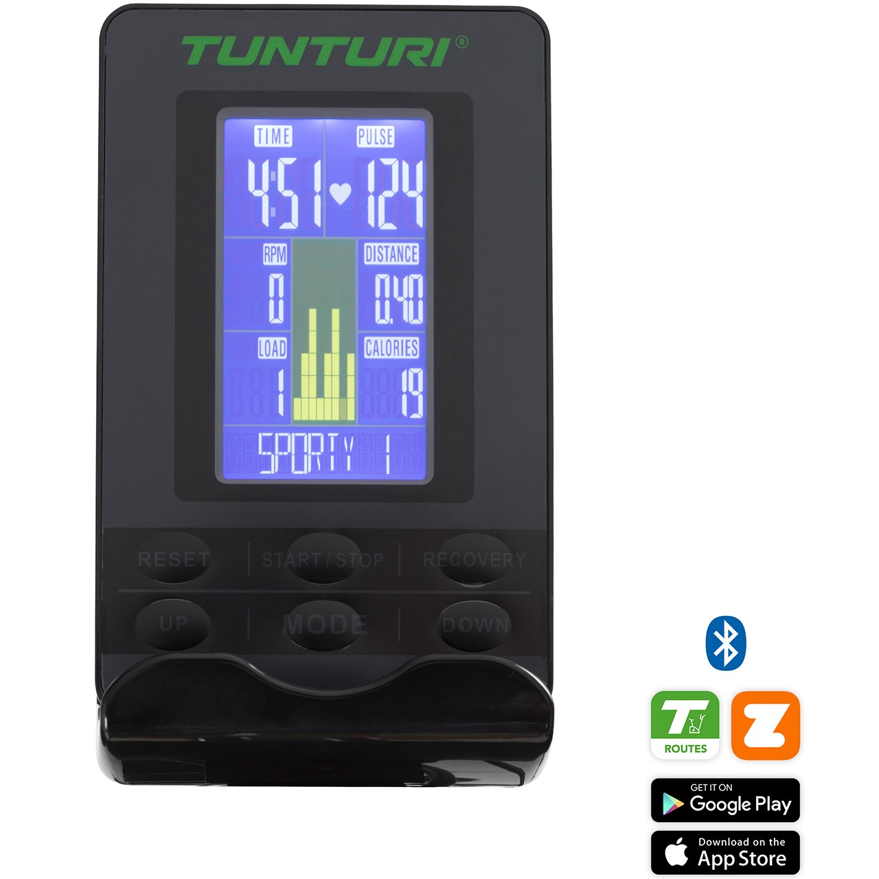 | Apps für Tablets und Smart Phones: | Tunturi Routes, i-Console+, Kinomap & Zwift |