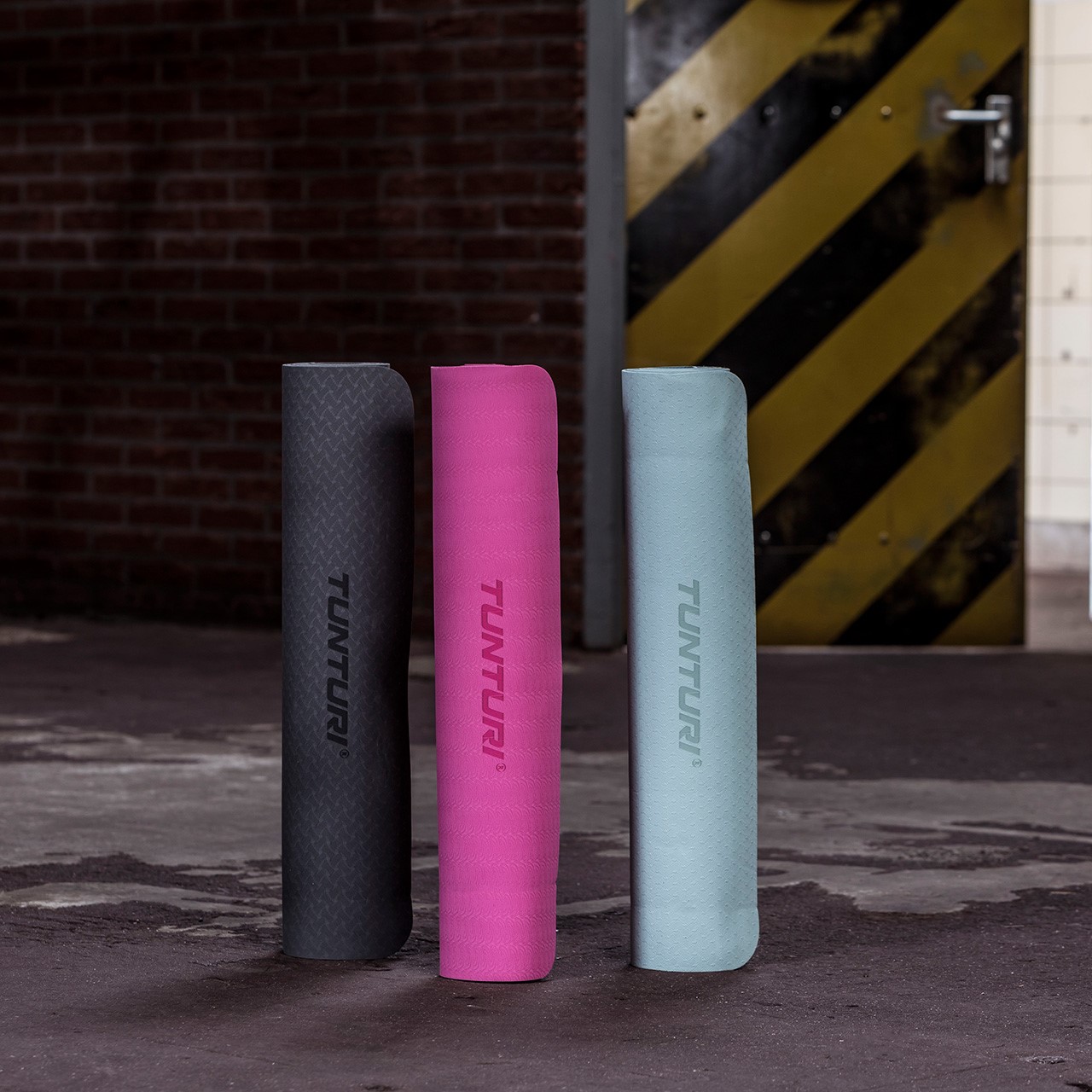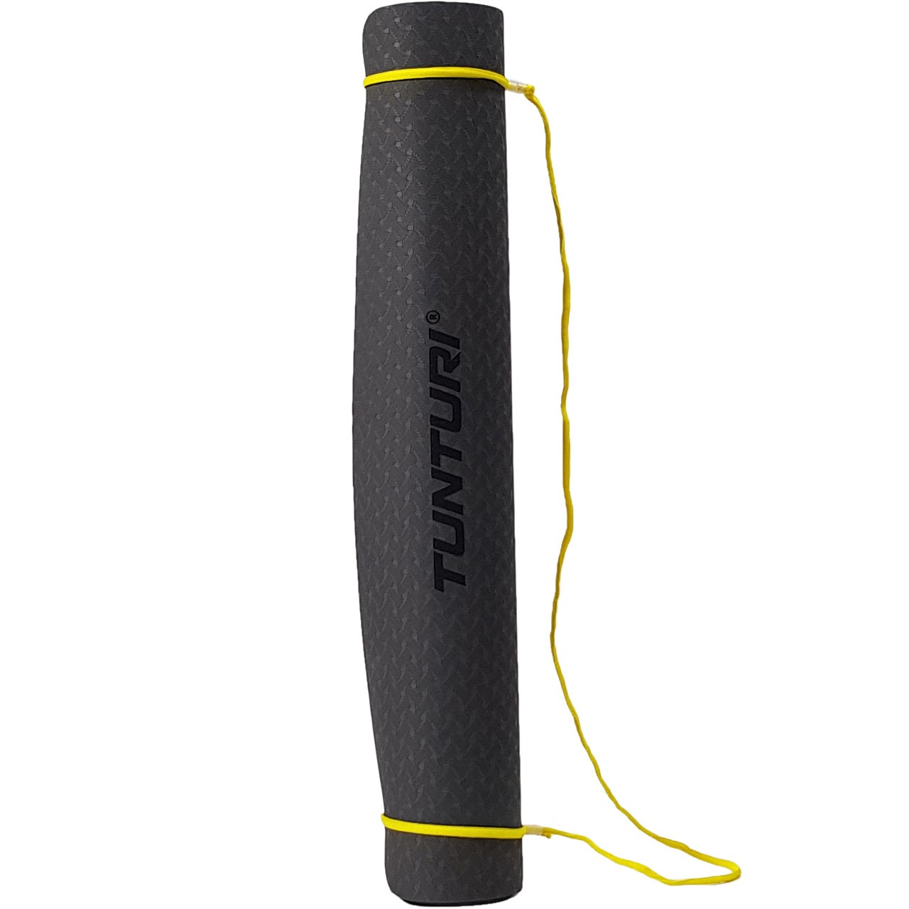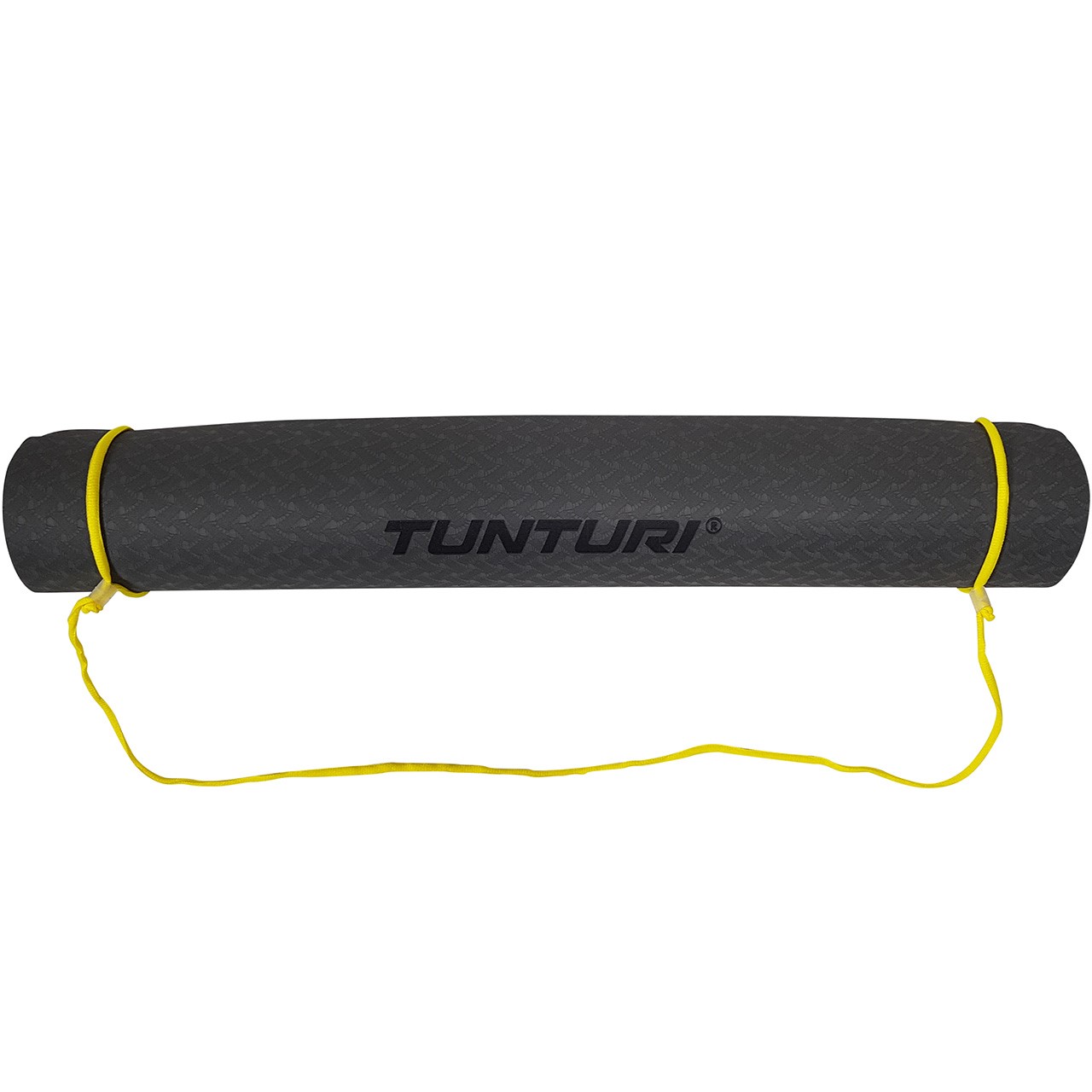 Die Tunturi TPE Yogamatte (14TUSYO031) ist rutschfest und somit ideal für das Yoga-Ritual. Die Yogamatte wurde speziell von Tunturi mit zwei verschiedenen Texturen produziert, um die Anti-Rutsch-Eigenschaft zu erlangen. Das Material ist TPE, welches zu 100% recyclebar ist. Die ungefähren Abmasse der Yogamatte betragen 183 x 61 (LB in cm). Die Matte ist 3 mm dick und kommt mit einer elastischen Kordel, damit man diese nach dem Training zusammenbinden und verstauen kann. Die Farbe der Matte ist Anthrazit und die Kordel kommt in Gelb.