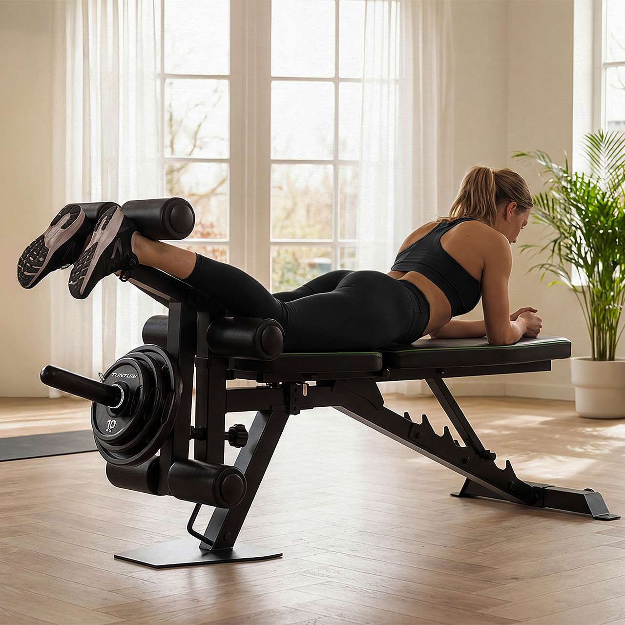 Erleben Sie vielseitiges Krafttraining zu Hause mit der verstellbaren UB60 Hantelbank von Tunturi (17TSUB6000). Diese hochwertige Utility Bench bietet 10 verschiedene Positionen für Rückenlehne und Sitzfläche und ist zusätzlich mit einem Leg Developer ausgestattet, der gezieltes Beintraining ermöglicht. So können Sie Oberkörper- und Unterkörperübungen bequem mit nur einer Bank ausführen.