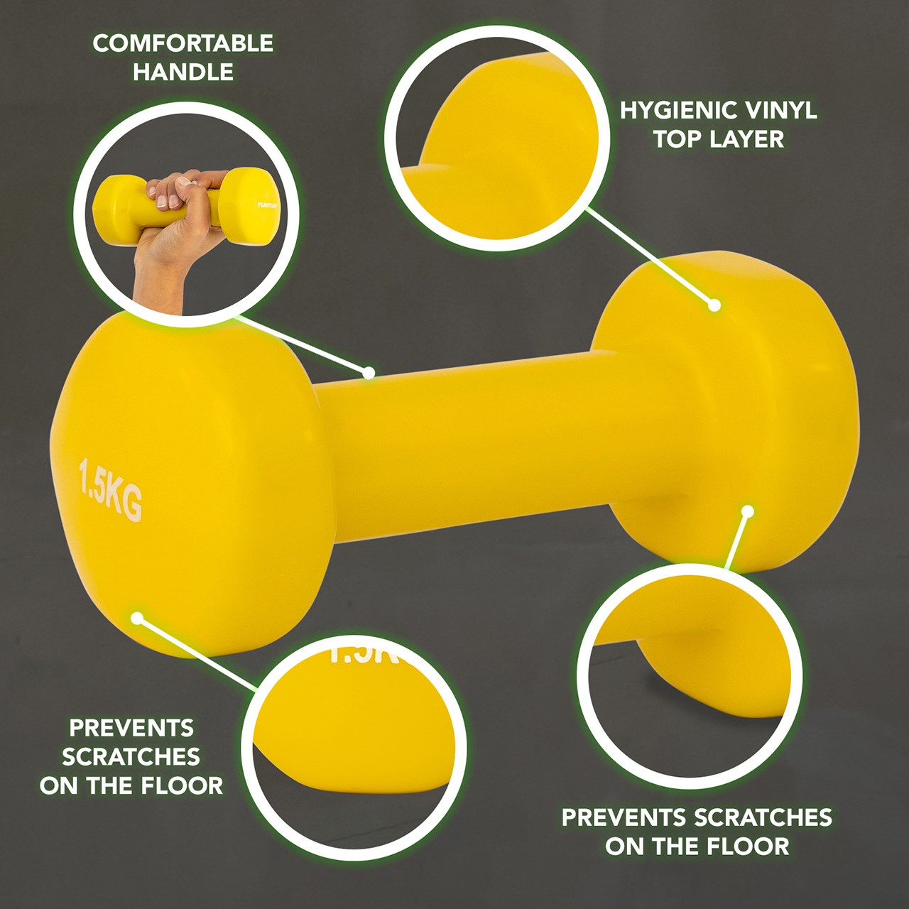 Merkmale Vinyl Kurzhanteln 1.5 kg Gelb