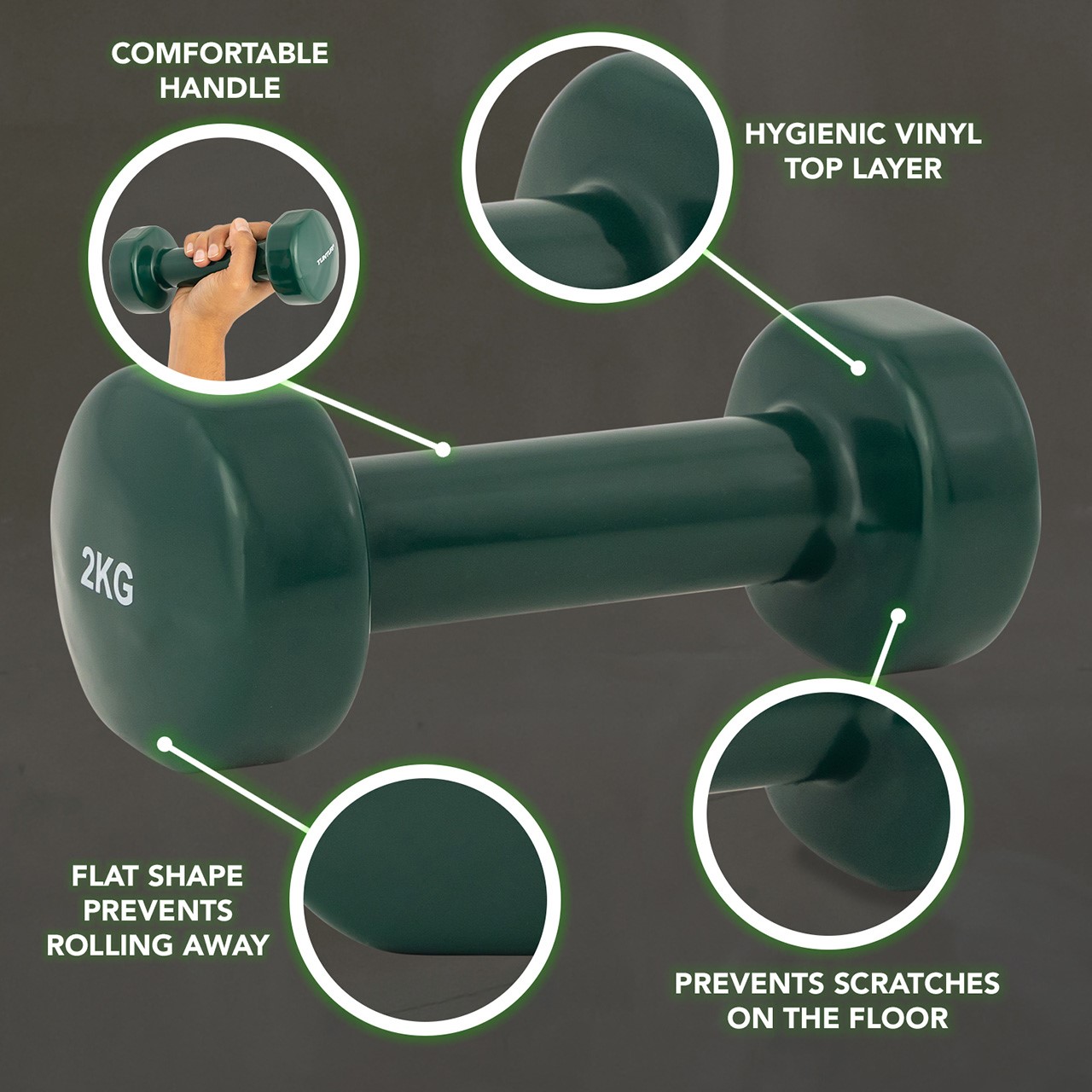Merkmale Vinyl Kurzhanteln 2 kg Grün
