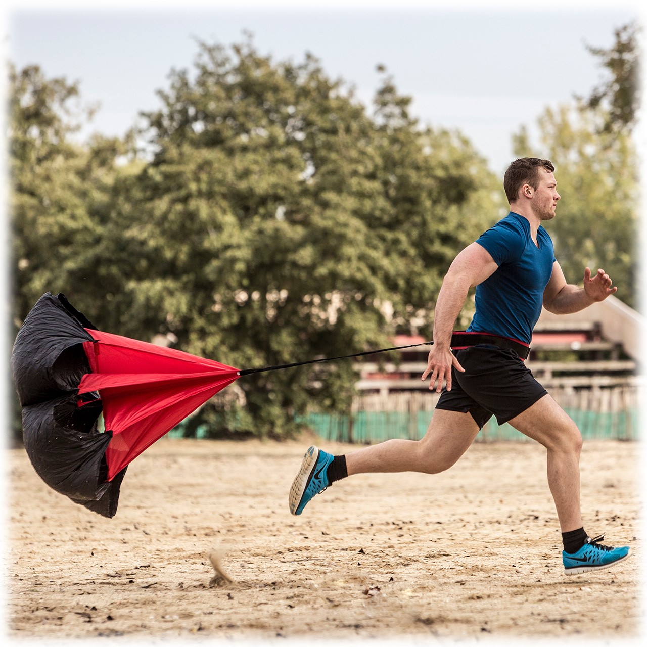 Der Tunturi Speed Resistance Parachute (14TUSCF020) ist ein innovatives Produkt, welches Athleten hilft, Stabilität, Schnelligkeit und Kraft auszubauen. Beschleunigung und Sprintgeschwindigkeit werden durch den Zugwiederstand und das Überfrequenztraining maximiert. Der Schirm öffnet sich, sobald der Läufer anfängt zu laufen. So entsteht ein Widerstand und das Training wird intensiver. Der Bauchgurt, mit welchem der Schirm an den Athleten befestigt ist, ist verstellbar. Dies schränkt den Läufer somit nicht in seiner Bewegungsfreiheit ein. Der Schirm lässt einen Widerstand von ca. 15-30 kg entstehen.