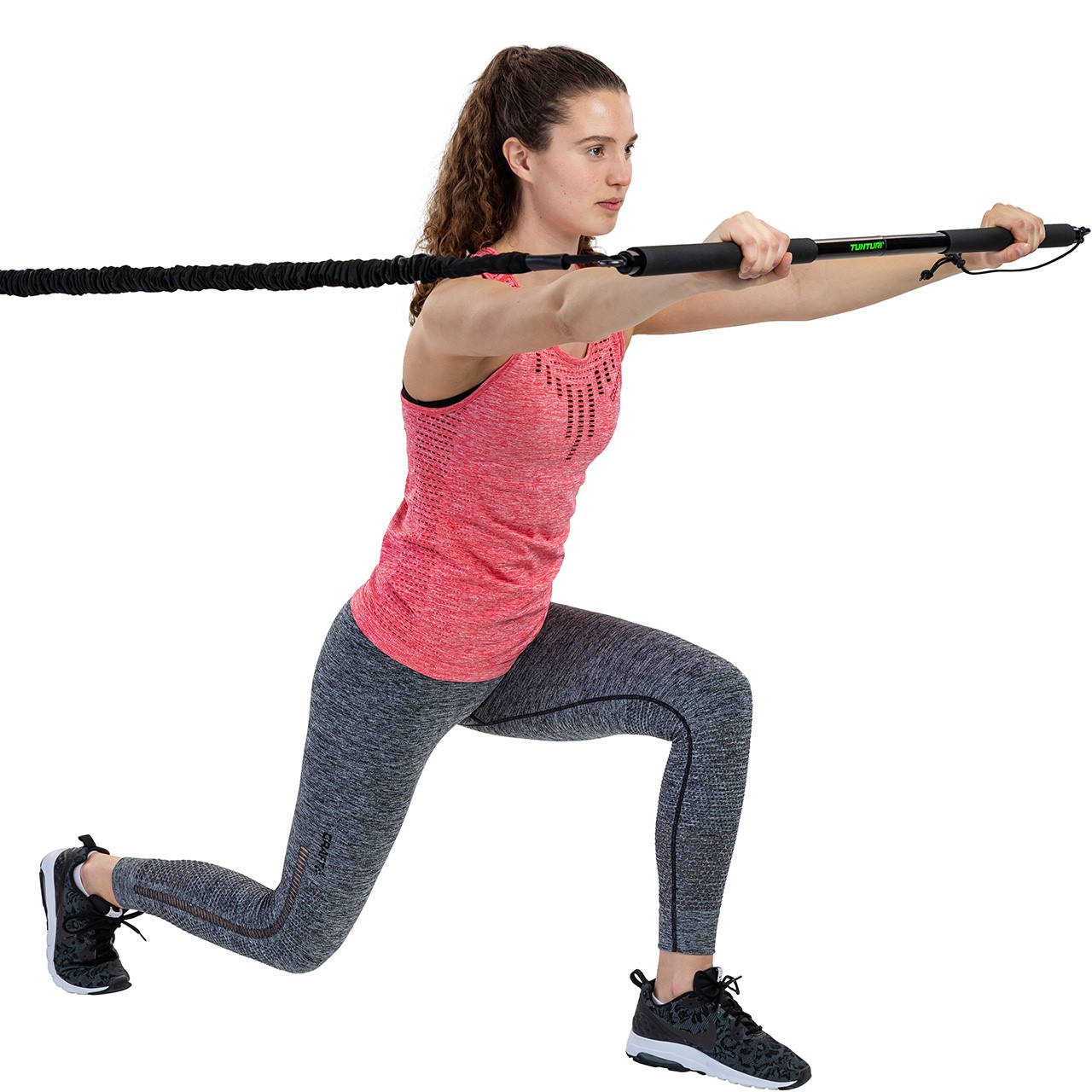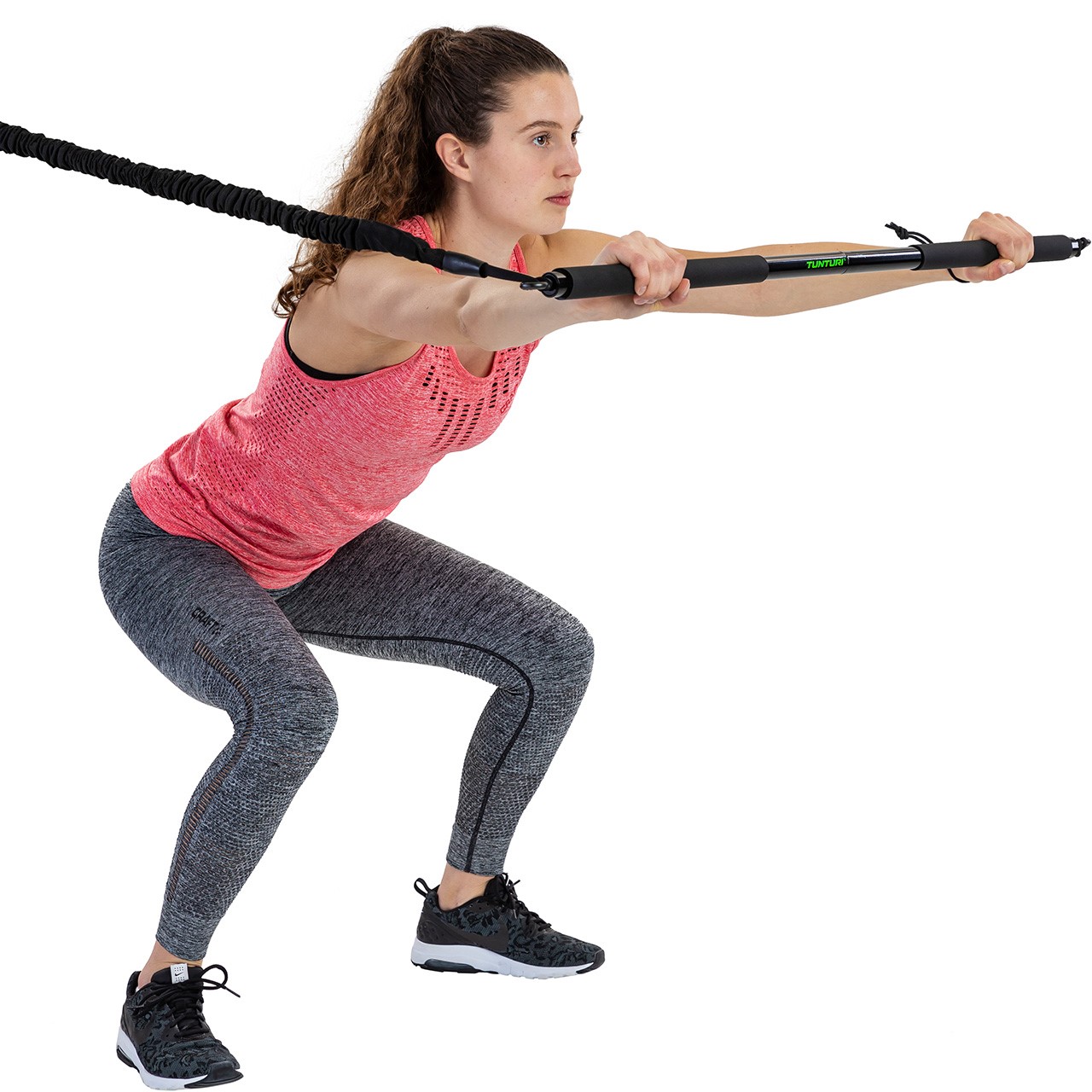 Abwechslungsreiches Fitnesstraining durch den Widerstandstrainer (14TUSFU308) von Tunturi. Der Fitnessstab kombiniert eine Gewichtstange mit einem Widerstandsband und ermöglicht so eine komplett neue Trainingsform.