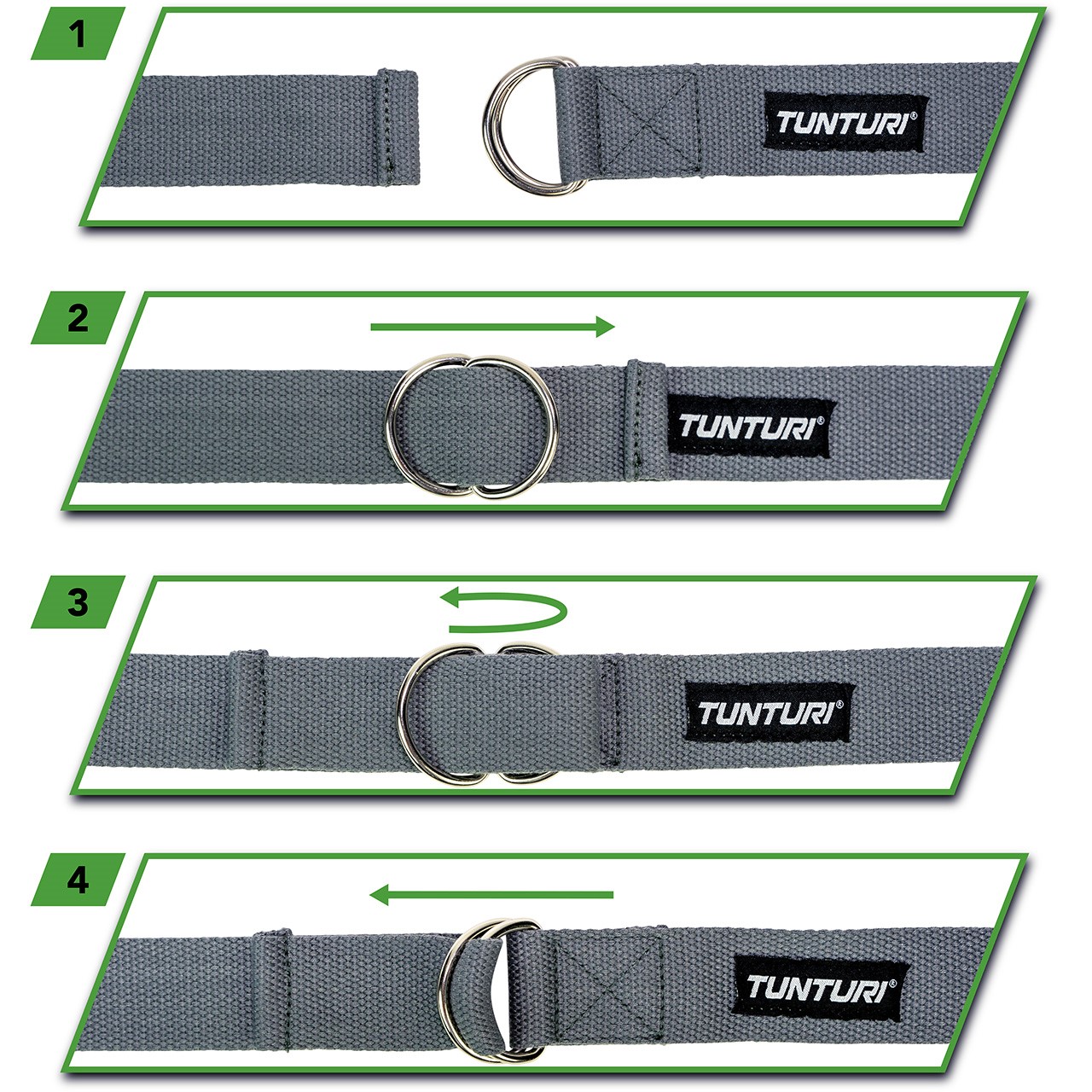 Die Tunturi Yoga Strap Riemen sind in den Farben Türkis (14TUSYO062) und Anthrazit (14TUSYO063) erhältlich. Der Gurt hilft den Athleten beim Einnehmen und beim Aufrechterhalten einer Yoga-Position. Mit dem Yoga Unterstützungsriemen werden die Bewegungsabläufe unterstützt und der Körper in die richtige Position gebracht.