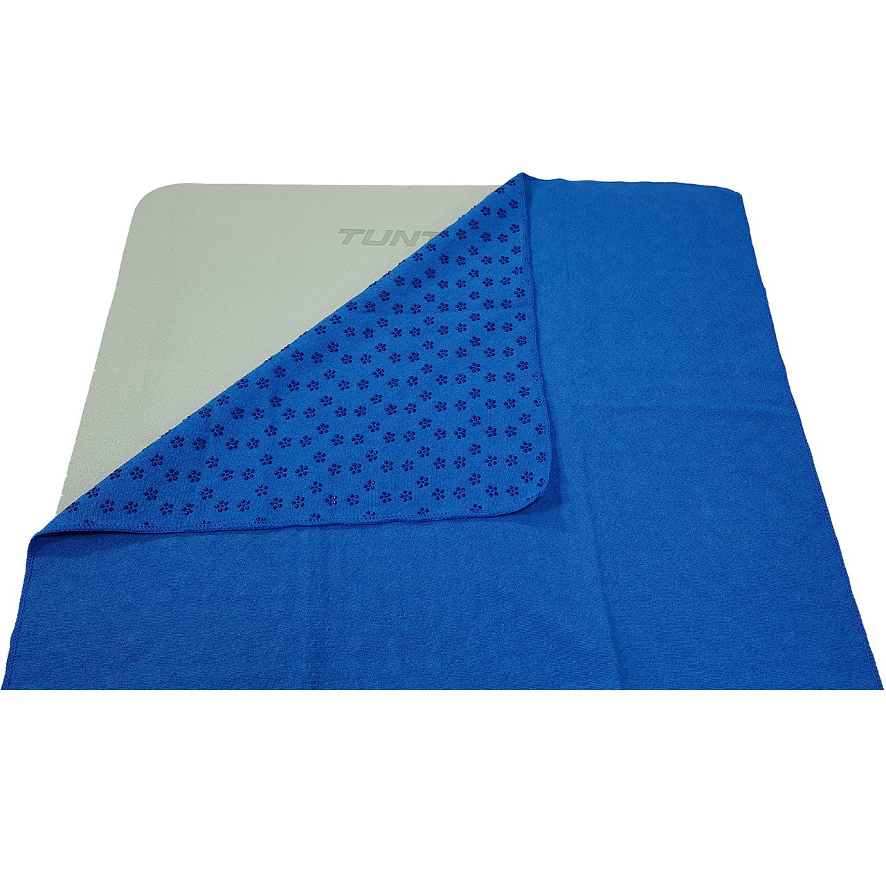 Ein Yoga Tuch gehört zu jeder Yoga-Session mit dazu. Eine schöne und komfortable Alternative zu herkömmlichen Fitnesstüchern ist das Tunturi Yoga Tuch (14TUSYO037-039). Es ist ein qualitativ hochwertiges Yogatuch, kommt mit 100% -igen Antirutsch-Silikon-Punkten und die Nähte sind umgeschlagen und umgenäht. Das Yoga Tuch bedeckt eine komplette Standard-Yoga-Matte von 60 x 180 cm und fängt so Schweiss und Flüssigkeiten auf und hält die Yoga Matten sauber und hygienisch. Im Lieferumfang ist eine Transporttasche aus Nylon-Mesh inklusive, um das Transportieren und Aufbewahren zu vereinfachen. Das Handtuch für Yoga ist Waschmaschinen tauglich und trocknet sehr schnell. Das Tuch von Tunturi ist 183 cm lang und 63 cm breit und kommt in den Ausführungen Grau, Blau und Pink. Die passenden Yogamatten sind separat erhältlich.