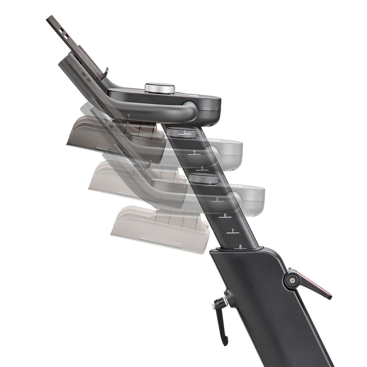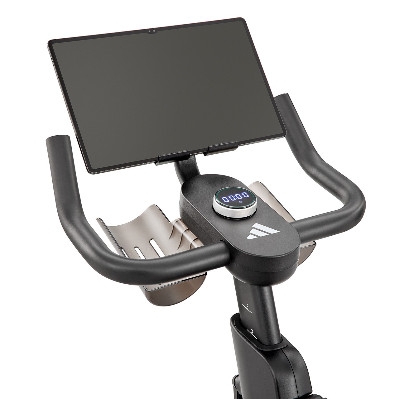 Ein elegantes LED-Dial Interface zeigt Ihnen in Echtzeit Ihre Trainingsdaten wie Geschwindigkeit, Zeit, Distanz, Kalorien und Umdrehungen pro Minute (RPM) an. Mit dem intuitiven Drehregler passen Sie den Widerstand im Handumdrehen an und optimieren Ihr Workout während der Fahrt. Ein höhenverstellbarer, integrierter Tablet-Halter sorgt zudem für die perfekte Sicht auf Ihre Lieblingskurse oder Trainings-Apps.