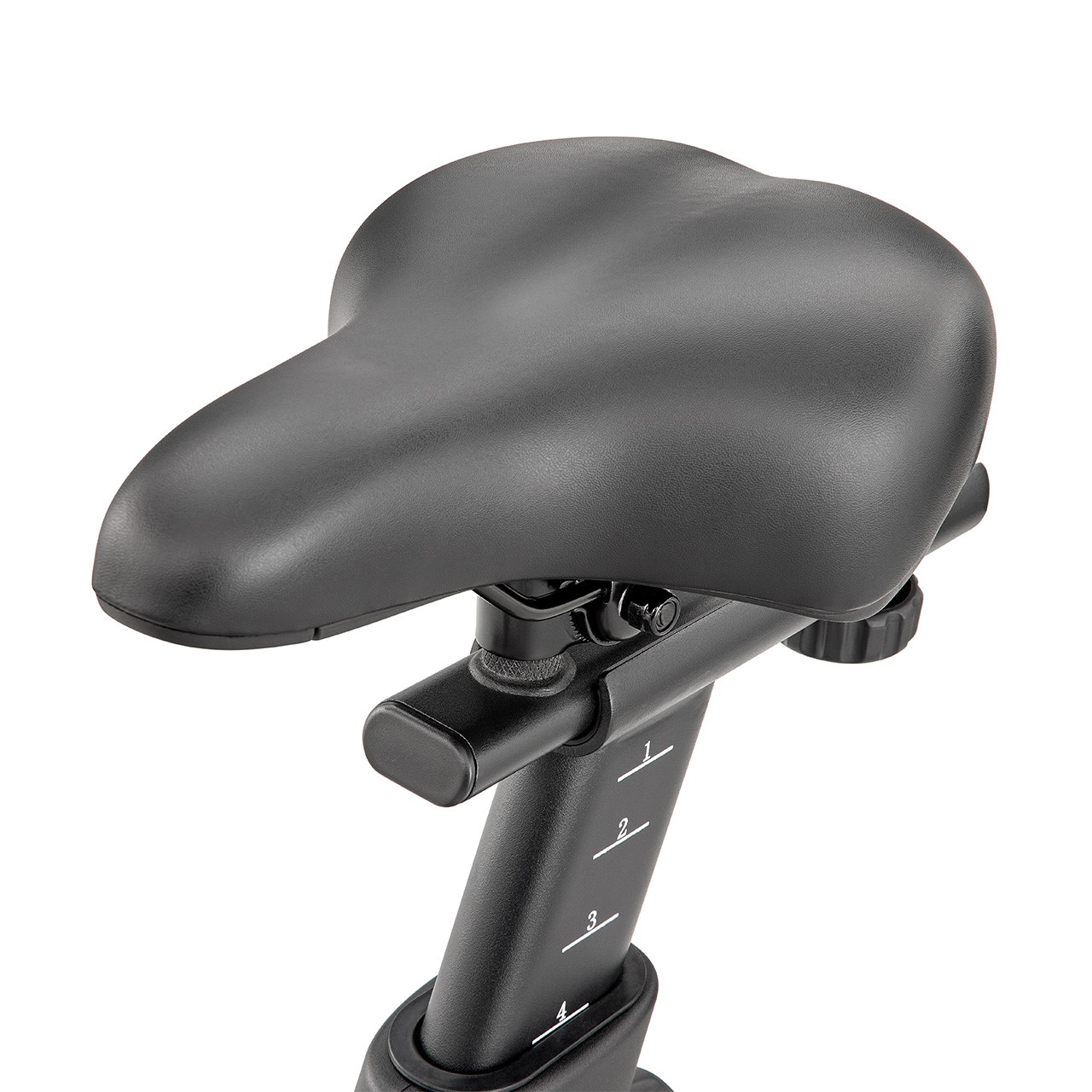 Das zweifach verstellbare, gepolsterte Sattel-Design und die mehrfach verstellbaren Multi-Grip-Lenker garantieren die ideale Sitzposition für jedes Fitnesslevel. Selbststabilisierende Pedale mit verstellbaren Riemen sorgen für sicheren Halt, während 2 eingebaute Flaschenhalter Ihnen ermöglichen, stets hydriert zu bleiben. Dank der stabilen Konstruktion ist das Bike für ein Benutzergewicht von bis zu 110 kg geeignet.