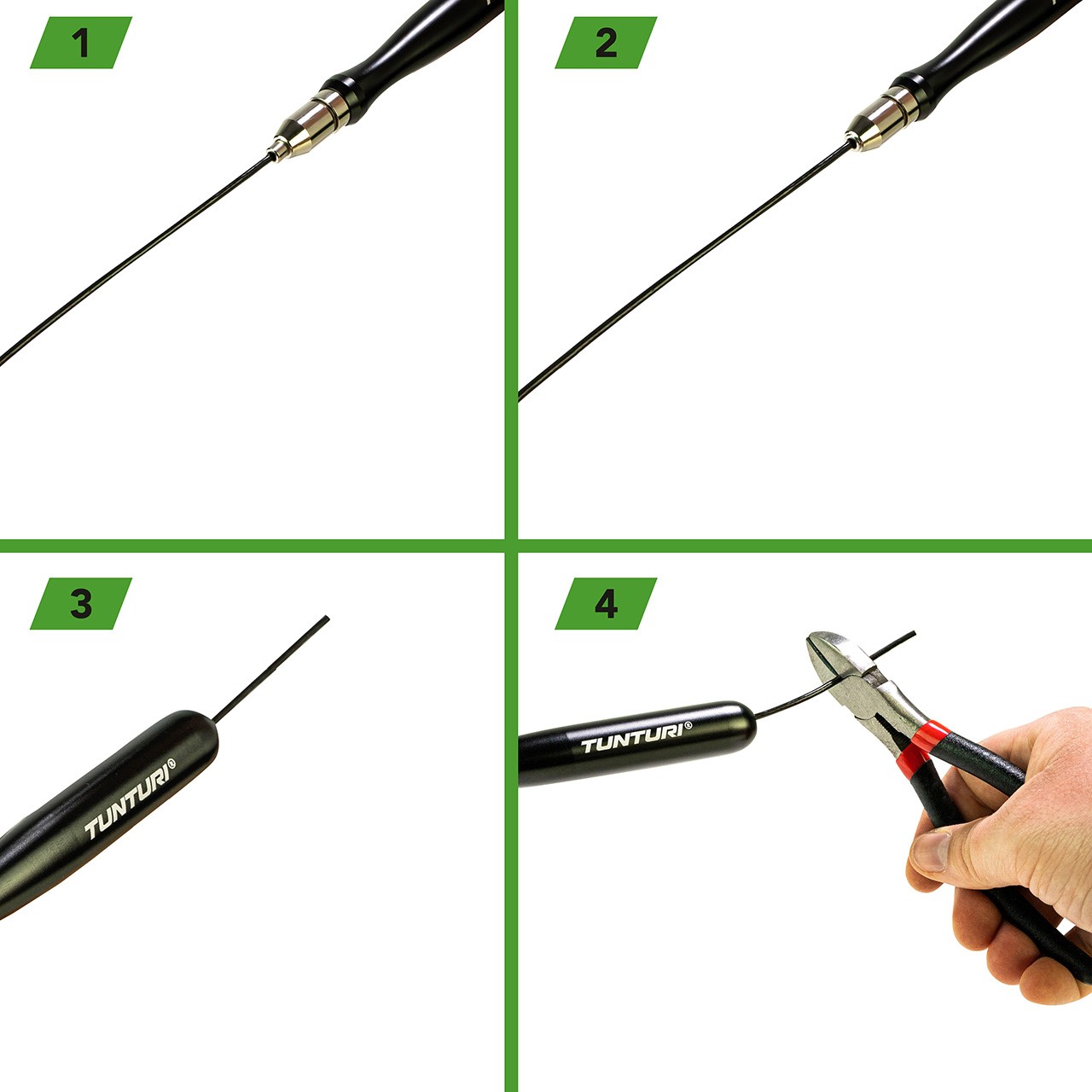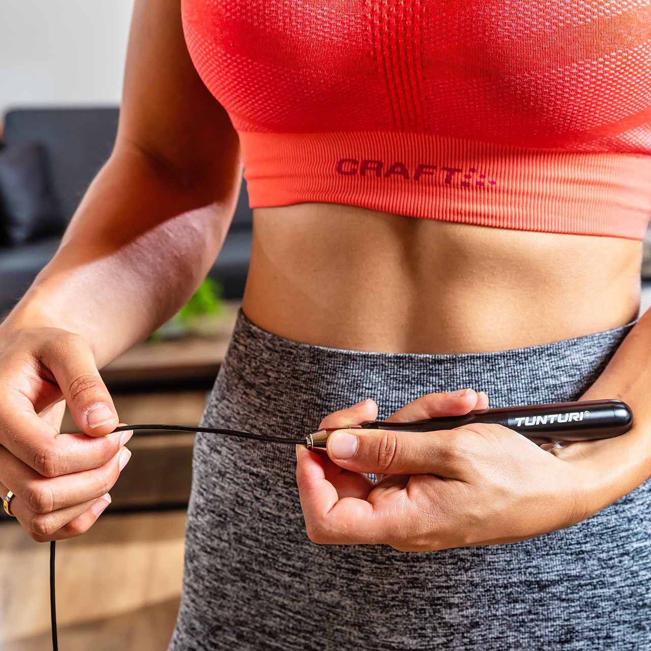 The Tunturi Jump Rope comes with a travelling bag for save storing of the rope. To increase the level of difficulty, additional weights like wrist and ankle weights or weighted vests can be used. Tunturi also provides this kind of accessories in the assortment.