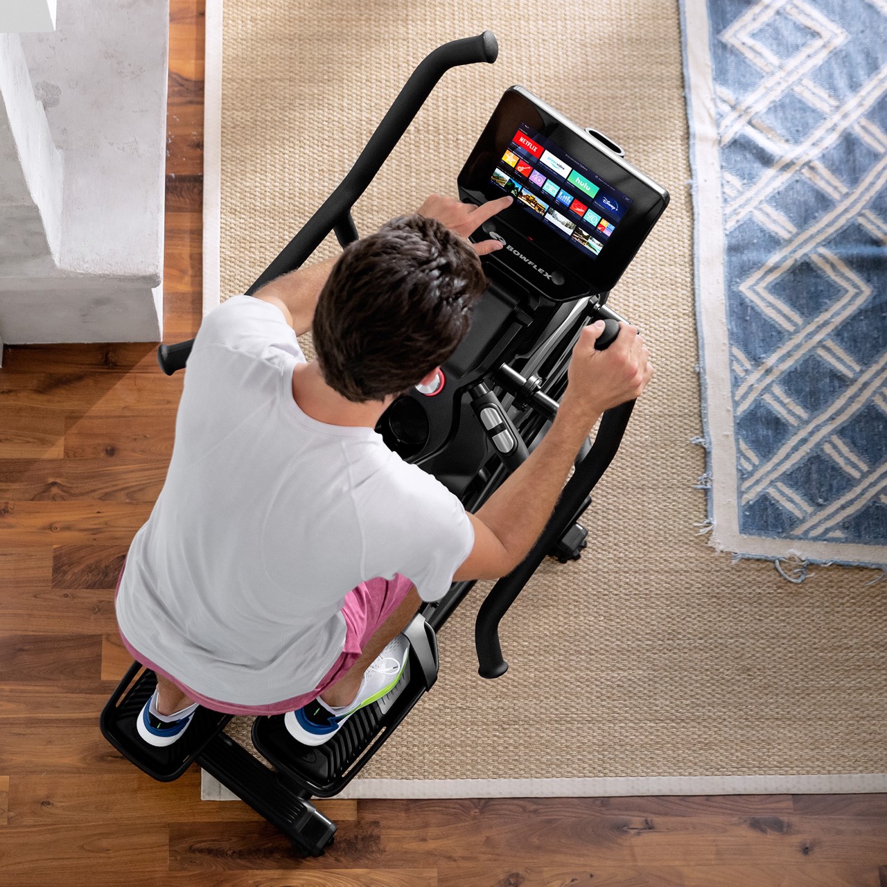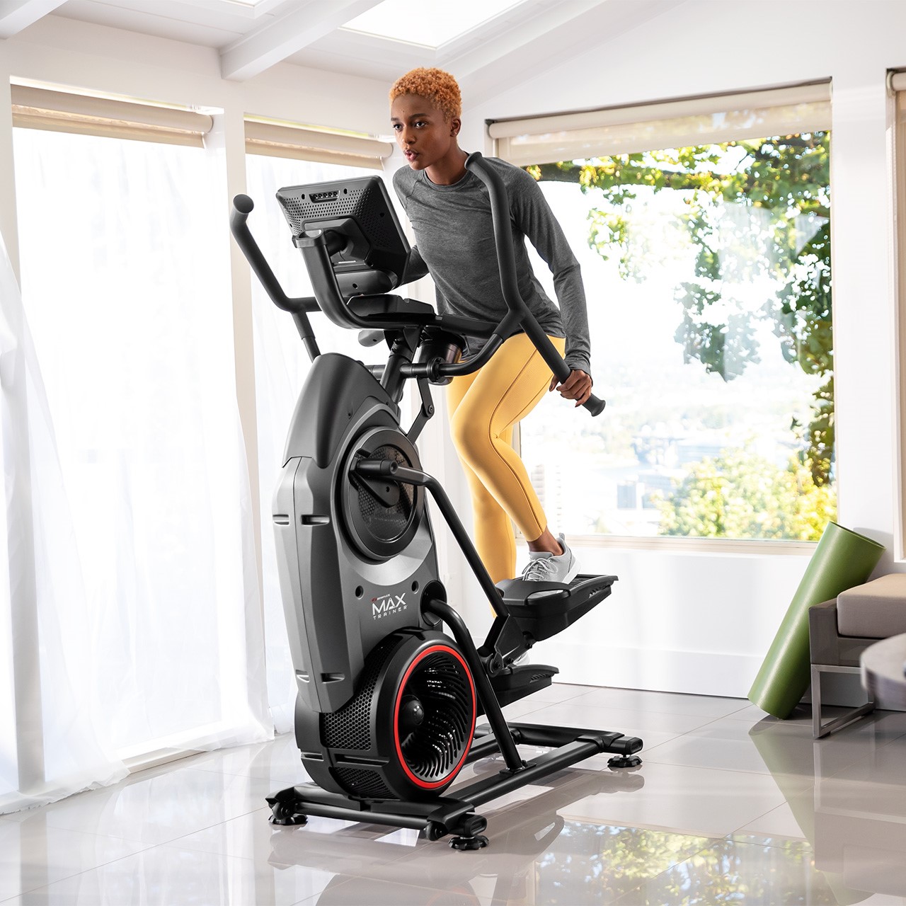The Max Trainer M9 (100965) enables joint-friendly HIIT training in minimal space. The Bowflex Max Trainer M9 features a 10-inch touchscreen display and, when paired with the JRNY App, offers nearly unlimited training possibilities.