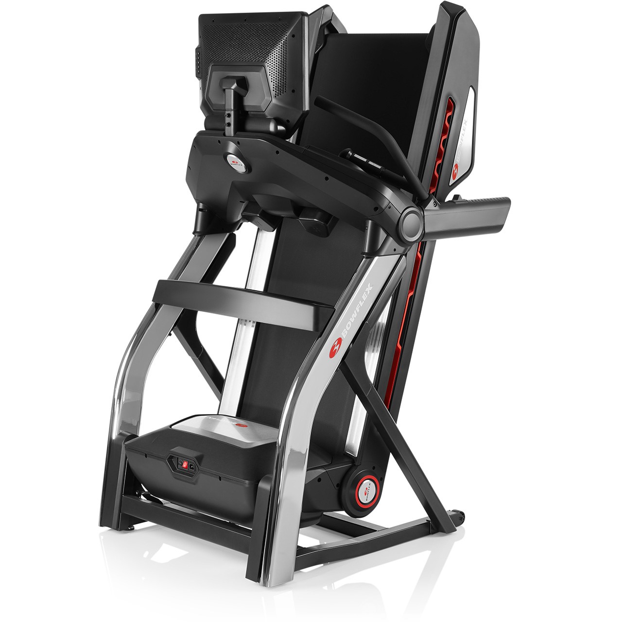 After training, you can easily fold up the Bowflex T56 treadmill using the practical SoftDrop™ folding mechanism for space-saving storage.