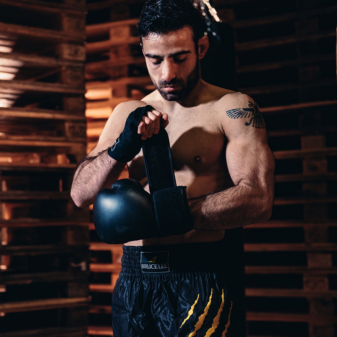 The Bruce Lee boxing glove Pro (14BLSBO097-14BLSBO100) was made of genuine leather and is produced in very high quality. Its simple design convinces all along the line and the Pro boxing gloves by Bruce Lee also convinces in terms of wearing comfort. The boxing glove comes with a Velcro around the wrist, which ensures stability in this area. In addition, the glove protects the fingers and hands by a thick padding and thus prevents injuries. The protective gloves for boxing are sold in pairs and in different sizes from 10oz - 16oz.