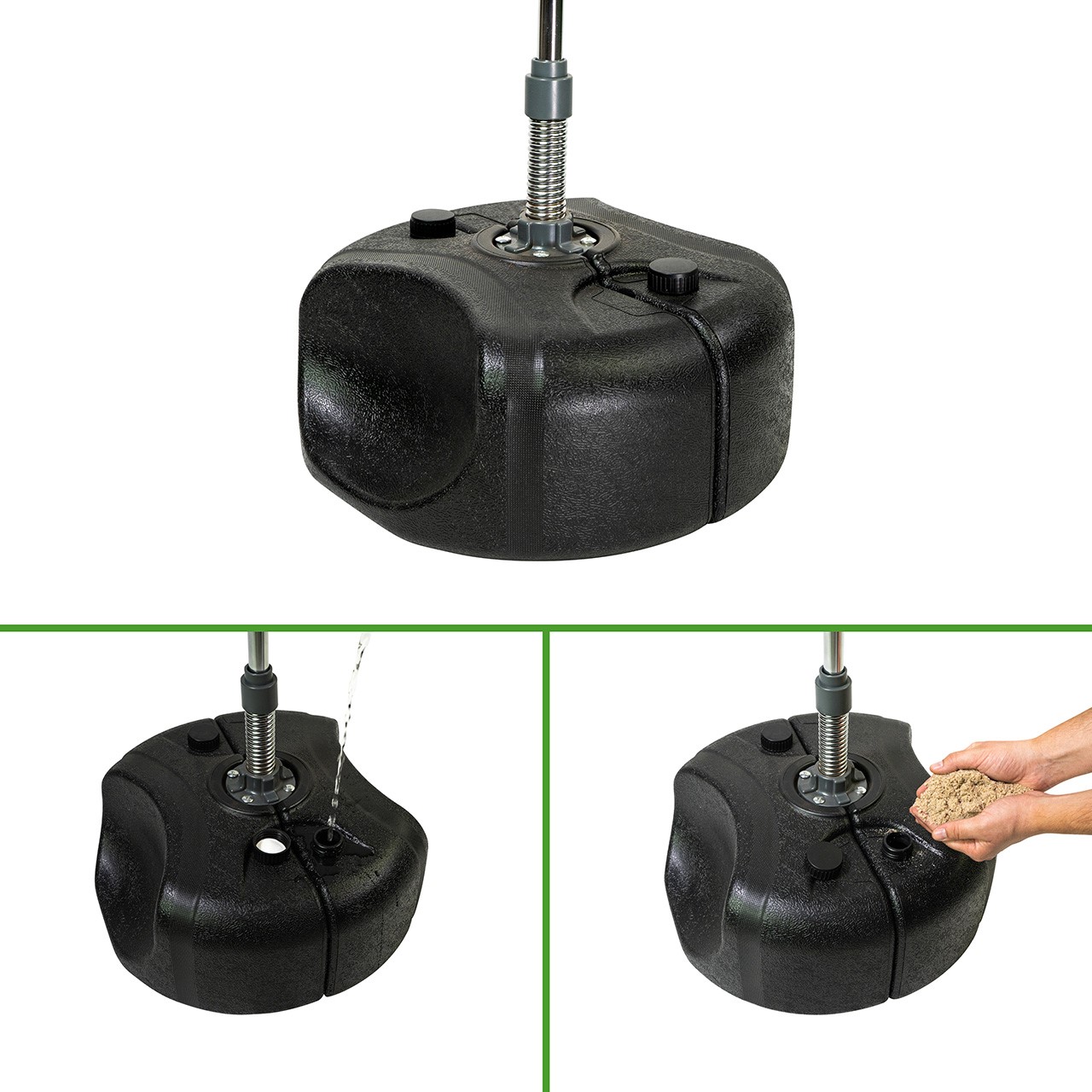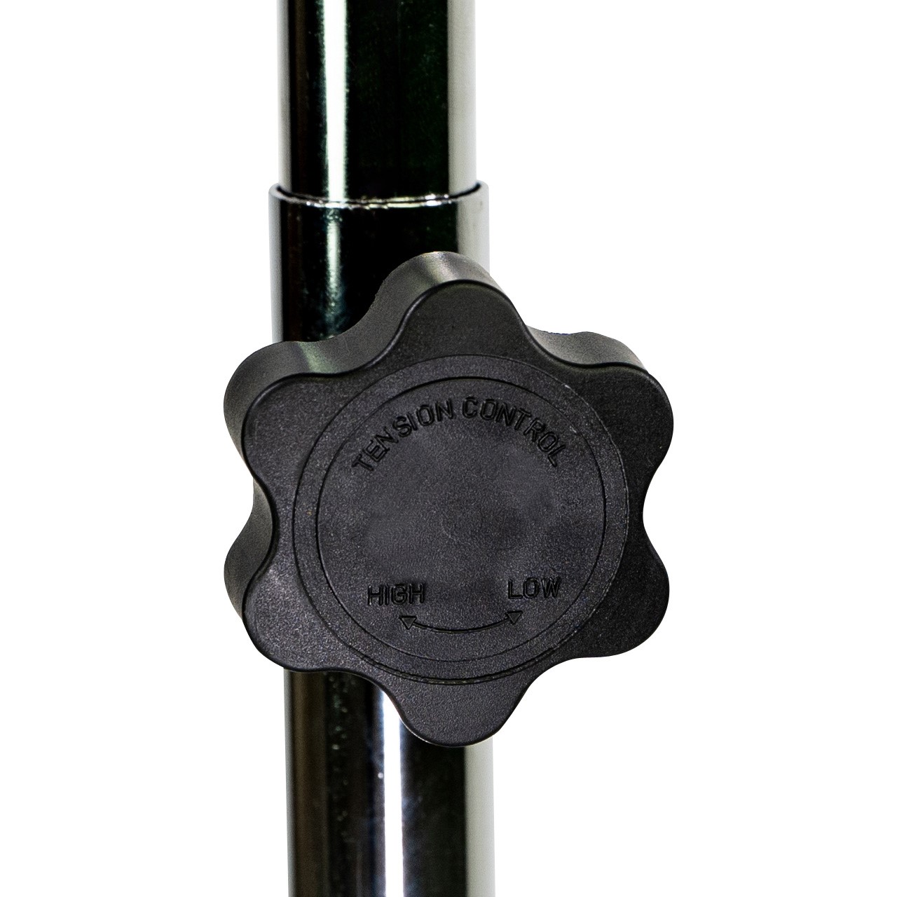 Its compact size of just 17 cm in diameter allows for easy integration even in limited spaces – ideal for home workouts or smaller studios. The adjustable height between 128 cm and 158 cm ensures optimal training comfort for users of all sizes. The sturdy base can be filled with water or sand for enhanced stability during high-intensity sessions.
