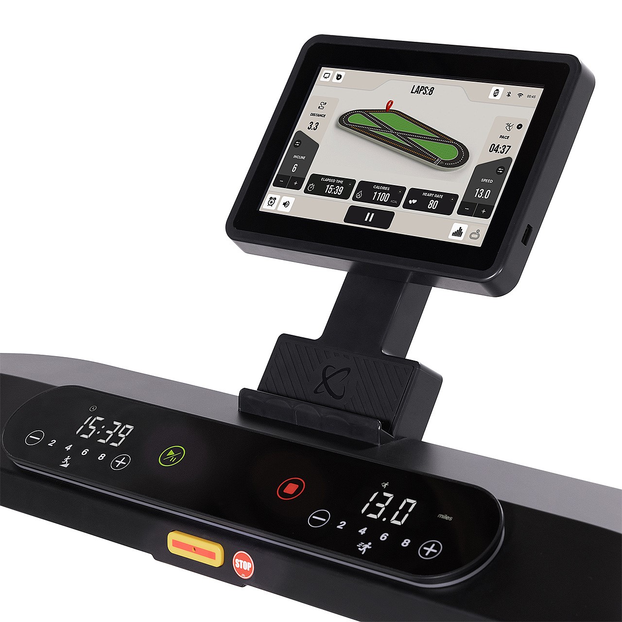 The quiet and energy-efficient 3.0 HP brushless motor delivers powerful performance. Intuitively control speed and incline with convenient quick keys, while the generous running surface of 50.8 × 139.7 cm ensures full freedom of movement. Connect your heart rate monitor via Bluetooth and track your intensity with the 5-color heart rate zone display. For extra motivation, popular apps like Netflix, Disney+, YouTube, and Amazon Prime Video are available directly on the screen – or wirelessly mirror your smartphone.