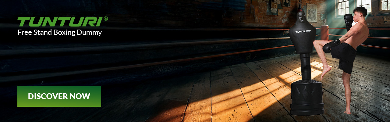 Want to work specifically on your punching technique, improve your reaction time, and have even more fun while training? Then a freestanding boxing dummy from Tunturi is the ideal sparring partner. Like a freestanding punch bag, it doesn’t require ceiling mounting – it’s ready to use immediately and can be set up without taking up much space.