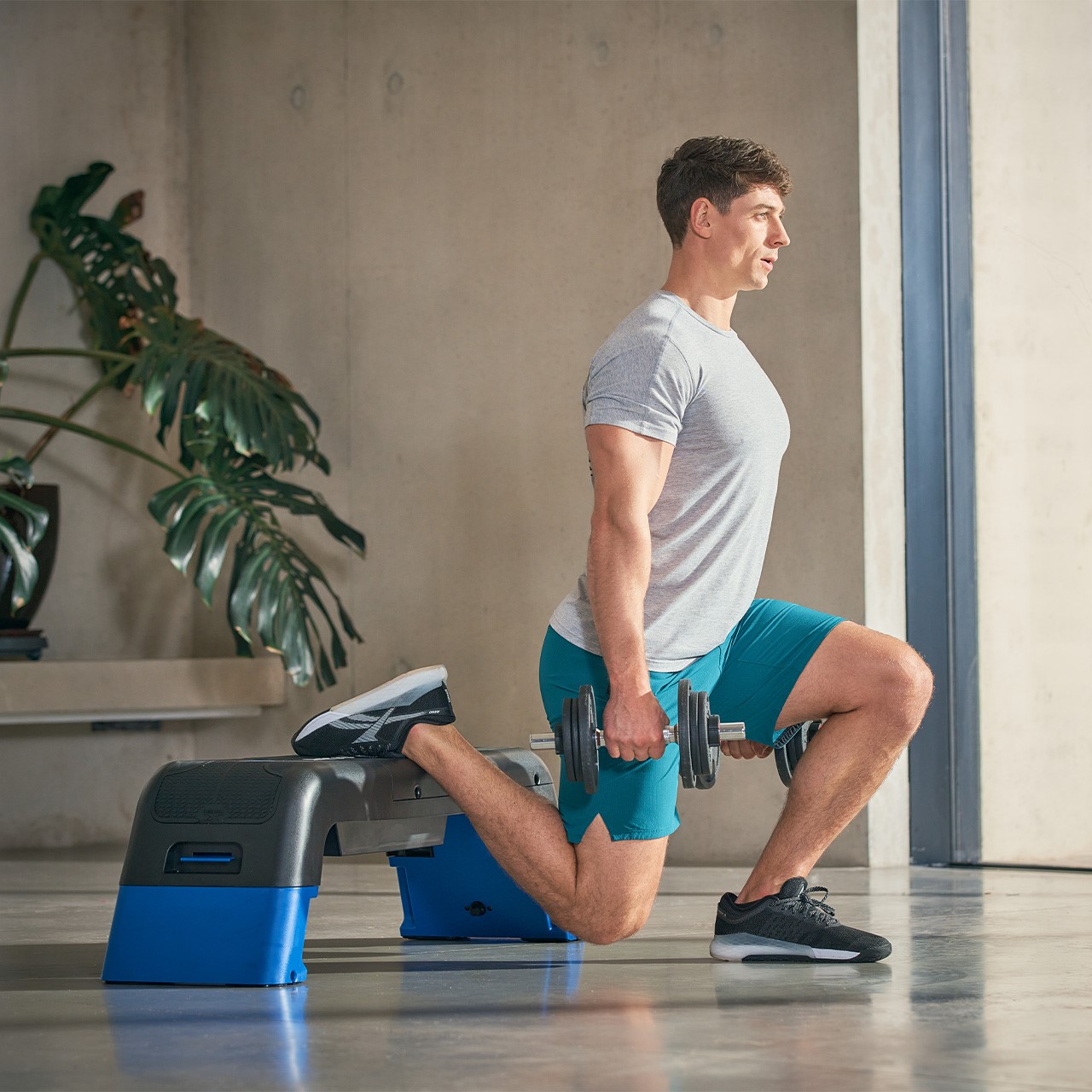 The stepboard is a fully adaptable training platform, featuring three bench configurations – flat, incline, and decline – along with a four-position adjustable backrest, giving you maximum control over your workout. Two height adjustments (20 cm and 35 cm) further increase the intensity and expand your exercise possibilities. Whether it's HIIT, aerobics, or strength training, the stepper is the perfect foundation for all fitness types.