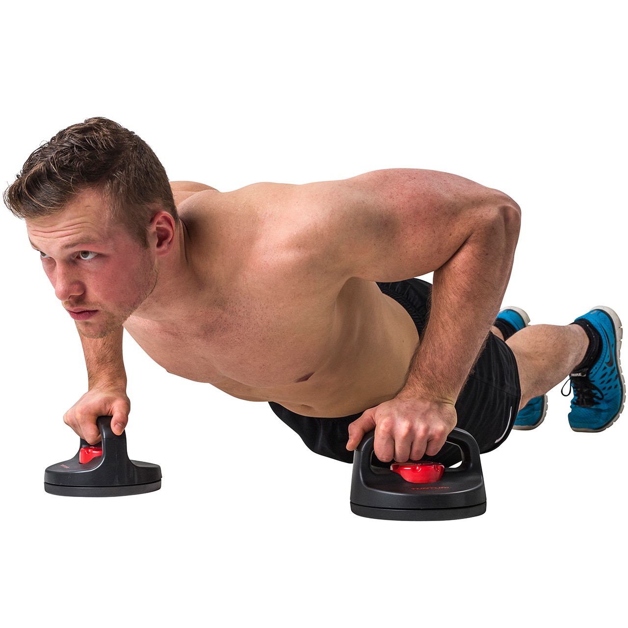 Push-ups belong to the simplest and most efficient basic exercises and with the Push-Up Stands from Tunturi, they will be even more efficient now. Because of the rotating movement, the wrists will be relieved and because of the rubber coated bottom side, they are non-slippery and secure.
